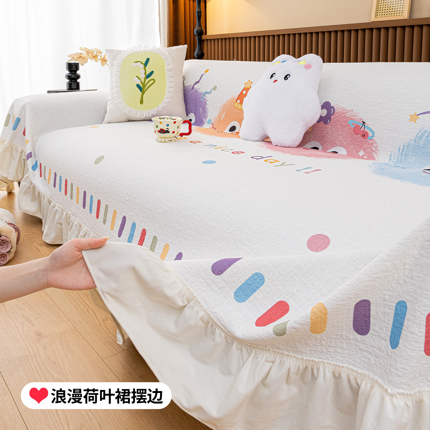 2025新款多巴胺卡通四季通用沙发巾盖布全包防滑防猫抓万能套罩垫