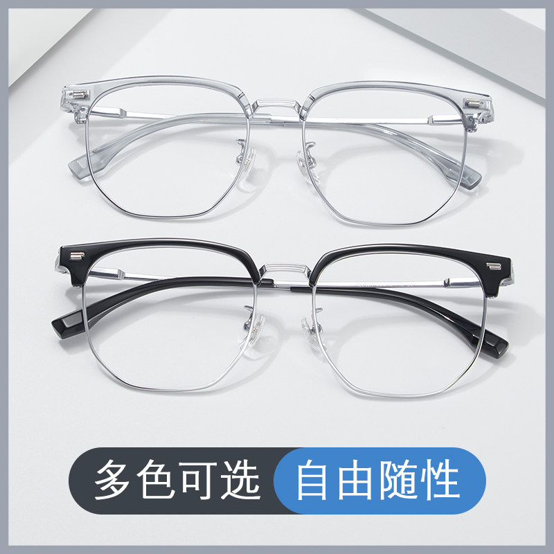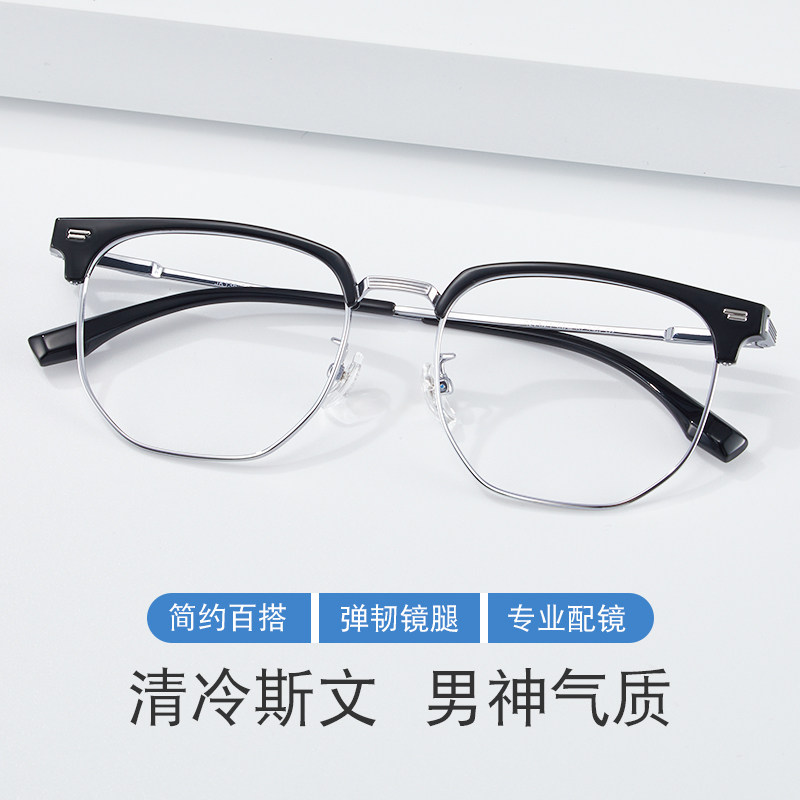 蔡司泽锐镜片铂金膜配男款多边形眉线眼镜框防蓝光近视可配度数J