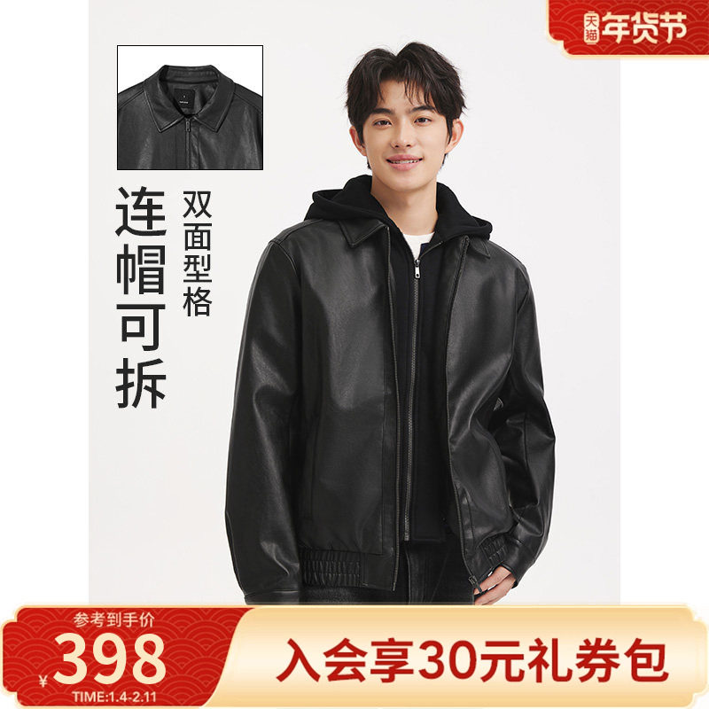 热风男士加绒皮衣2025年冬季新款经典连帽夹克质感有型简约大气