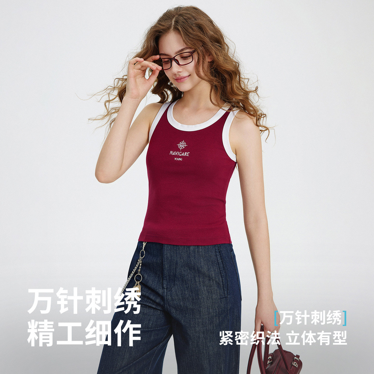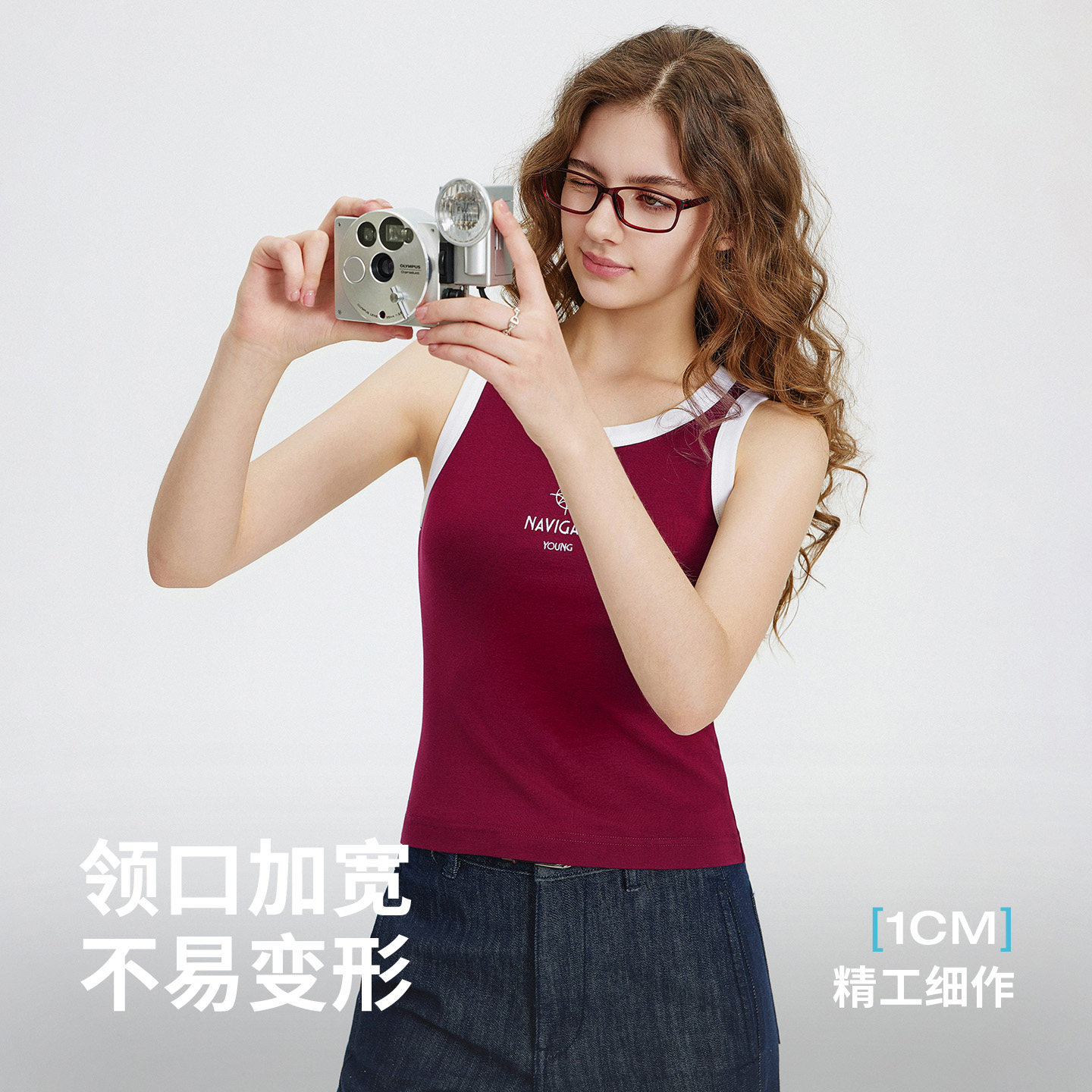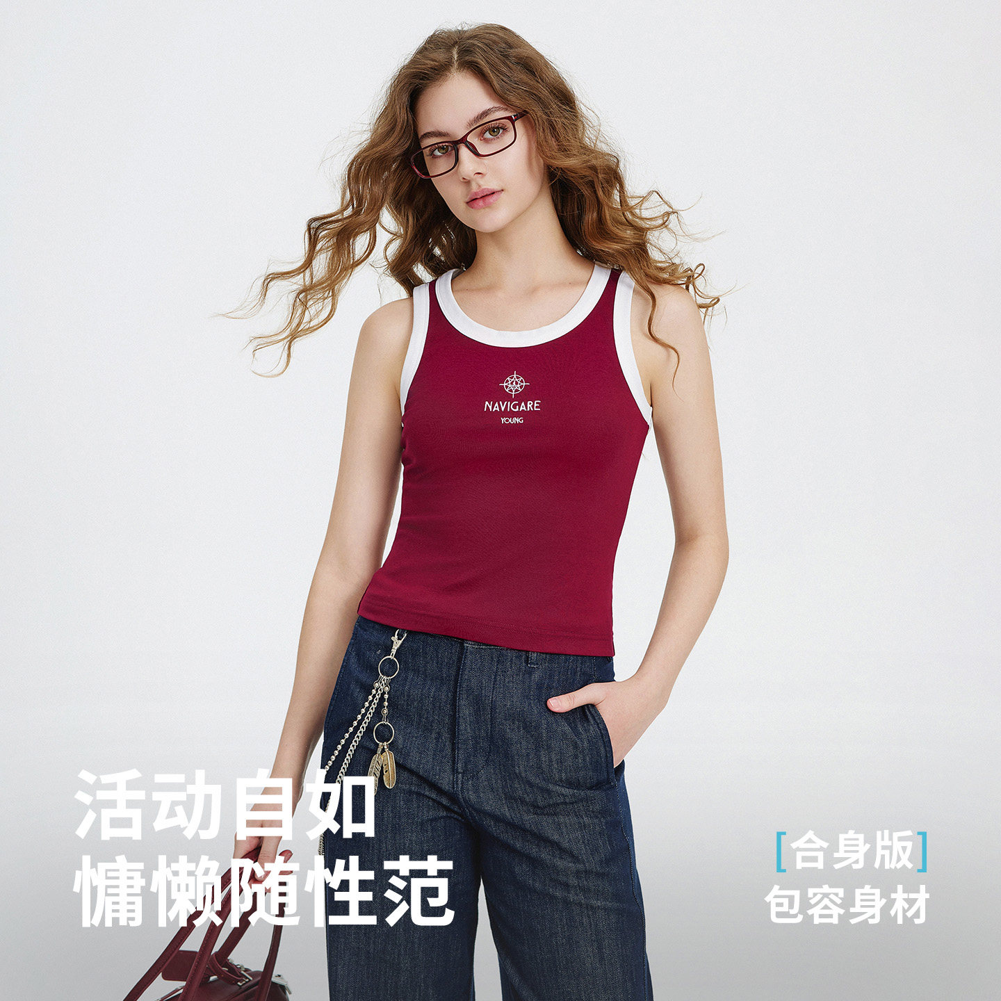Navigare意大利小帆船红色圆领肩带背心女2026夏季内搭无袖上衣