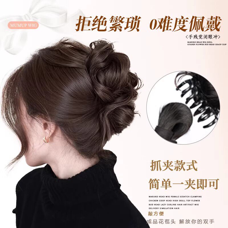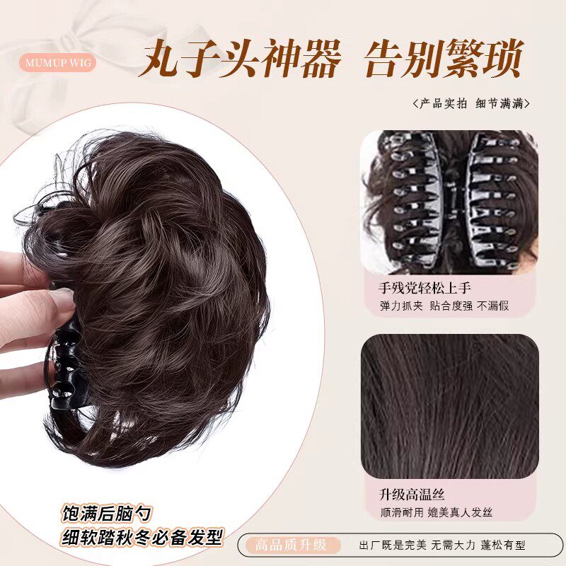 低扎丸子头假发鸡毛头抓夹盘发发包慵懒感造型头饰自然蓬松后脑勺