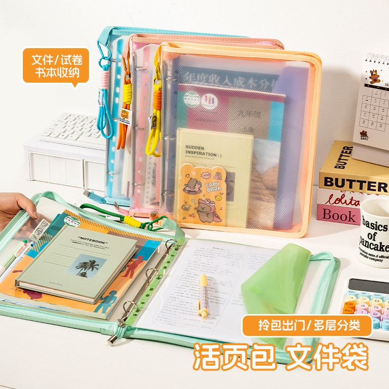 A4活页包高颜值文件袋透明拉链资料袋学生试卷收纳神器学习课本包
