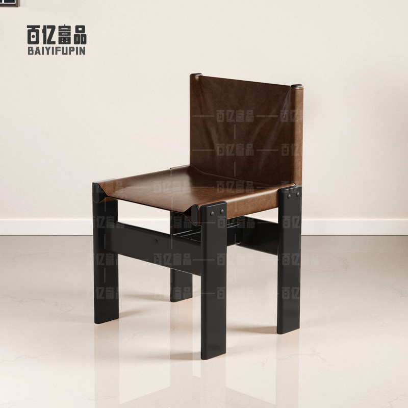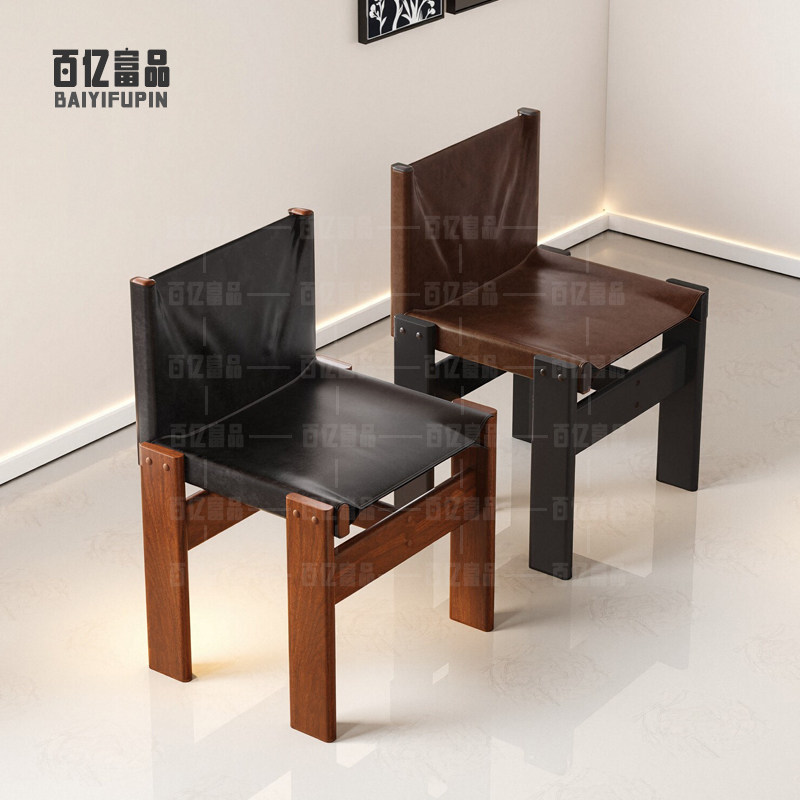 轻奢侘寂风餐椅皮软包设计师现代弯曲木咖啡厅实木椅子家用书房椅