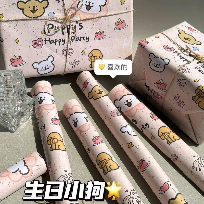 开心小狗ins风高颜值包装纸大尺寸DIY卡通礼品礼物鲜花礼物打包纸