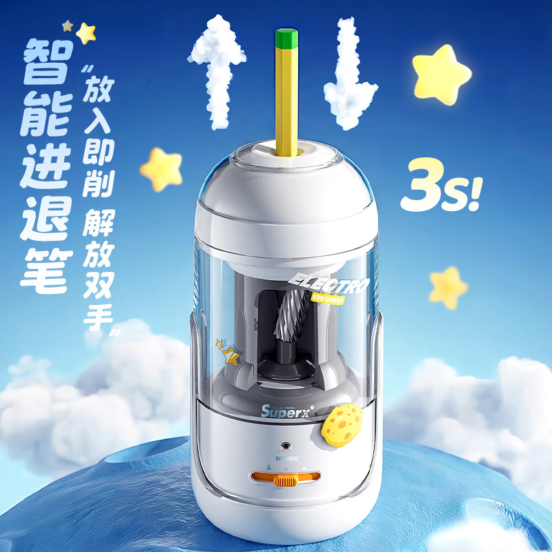 晨光大口径全自动削笔机器小学生专用电动充电进粗杆三角铅转卷笔刀男女孩幼儿童园削削乐六一儿童节礼物套装