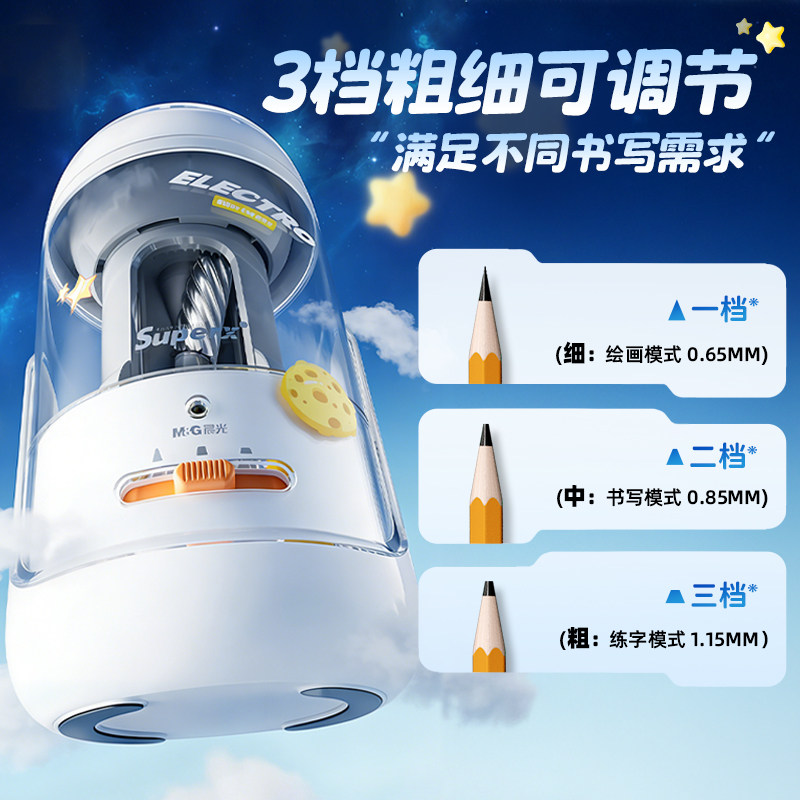 晨光大口径全自动削笔机卷笔器小学生专用多档调节不挑粗细旋笔刨笔刀转笔刀加粗杆铅笔刀电动充电款卷笔刀具
