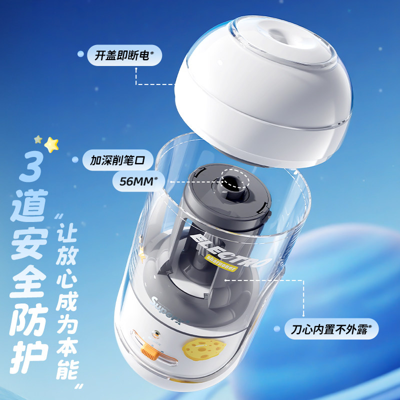 晨光银河小旋星全自动削笔机小学生专用洞洞铅笔卷笔刀幼儿园儿童男女孩旋刨绞转笔刀一年级充电款电动削笔器