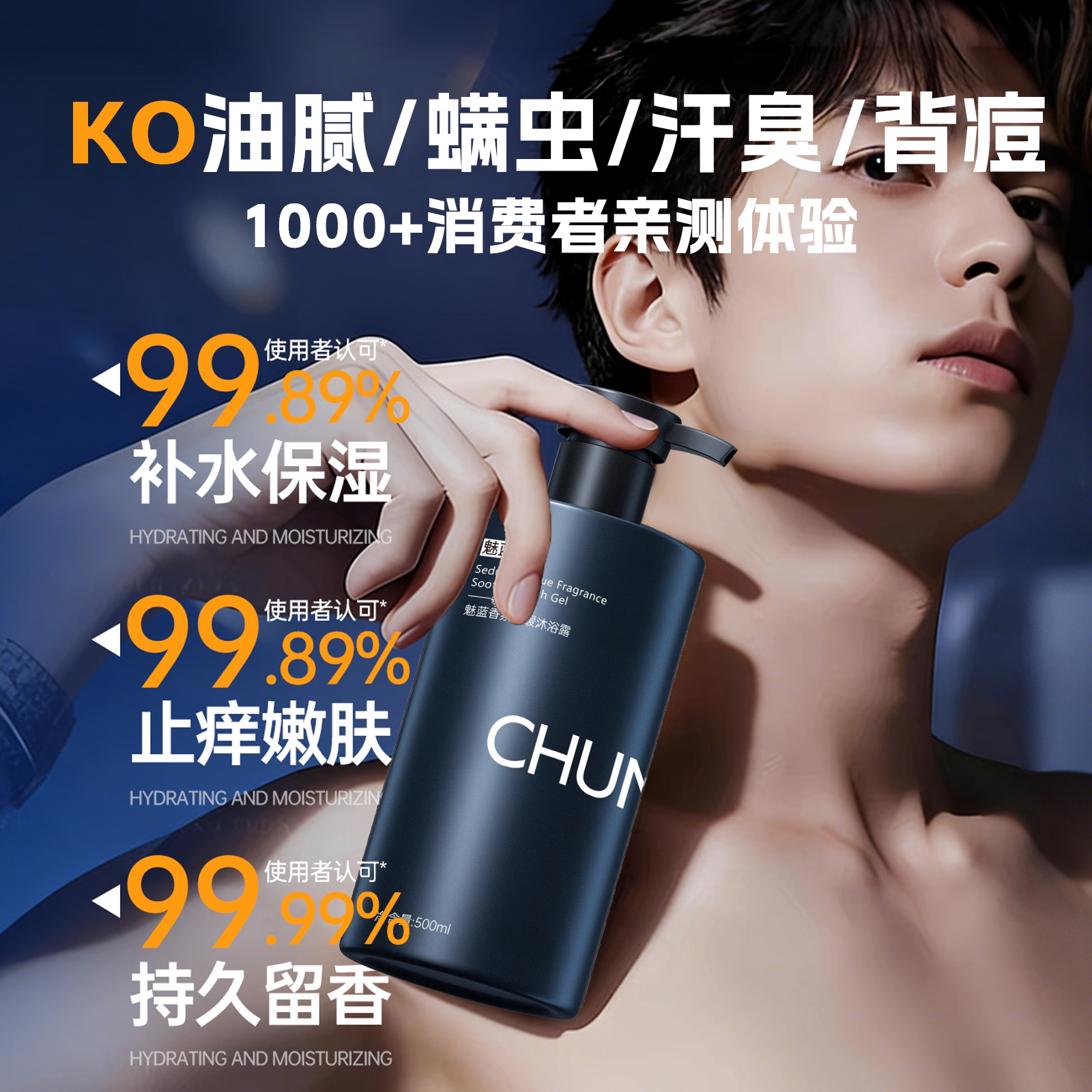 魅蓝香氛沐浴露男士持久留香祛痘除螨洗发水套装正品官方品牌控油