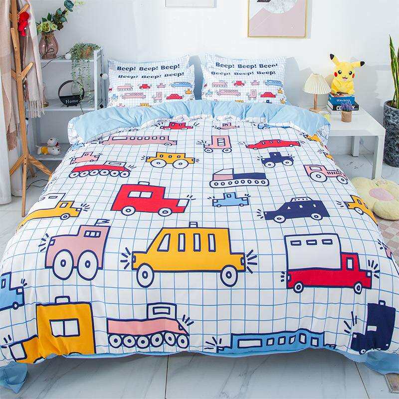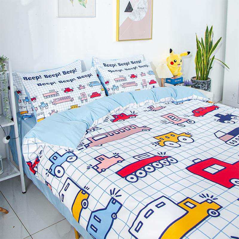 汽车四件套外贸挖掘机可爱被套床单宿舍0.9m/1.8m套件床笠款萌趣