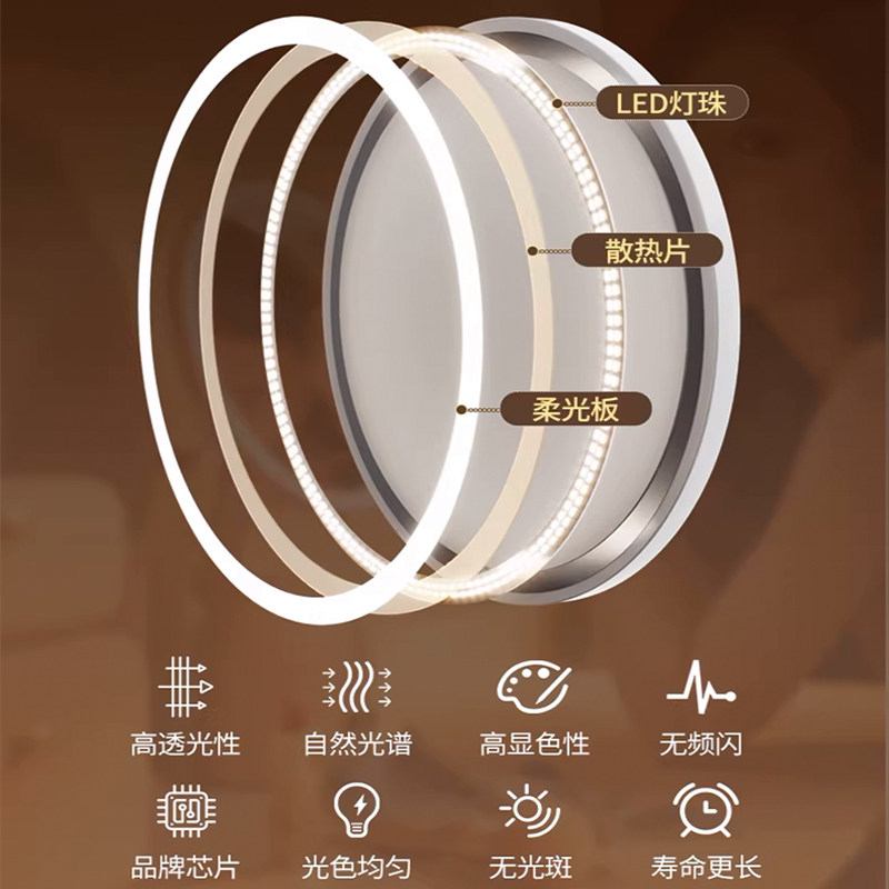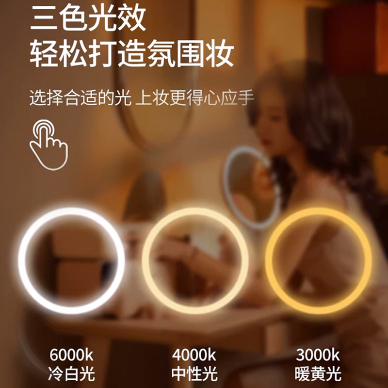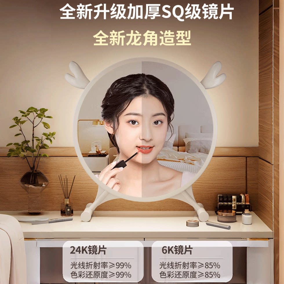 2026轻奢化妆镜圆形智能梳妆镜卧室台式桌面高级梳妆台大镜子高清