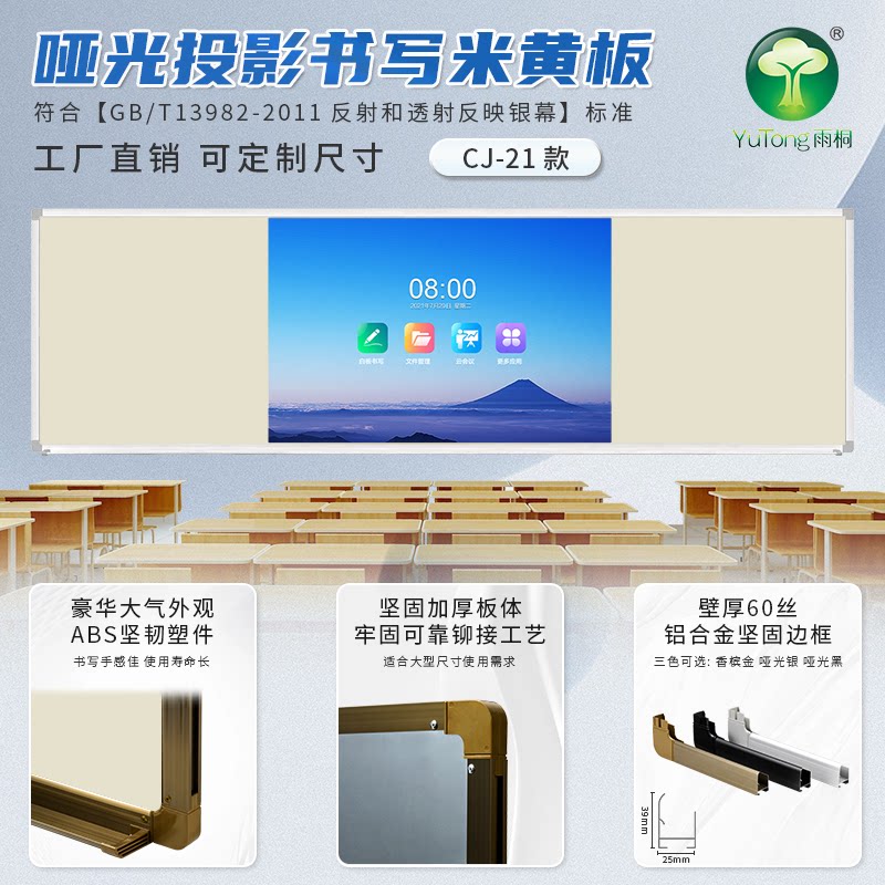 米黄板教学会议培训哑光投影书写两用白板磁性写字板成都厂家定制
