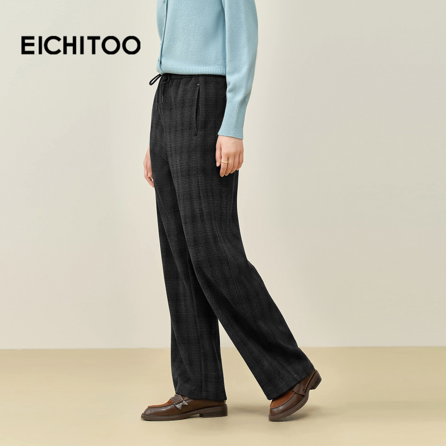 唐狮DESSO秋冬新款糯米裤高腰垂感宽松加绒直筒阔腿裤