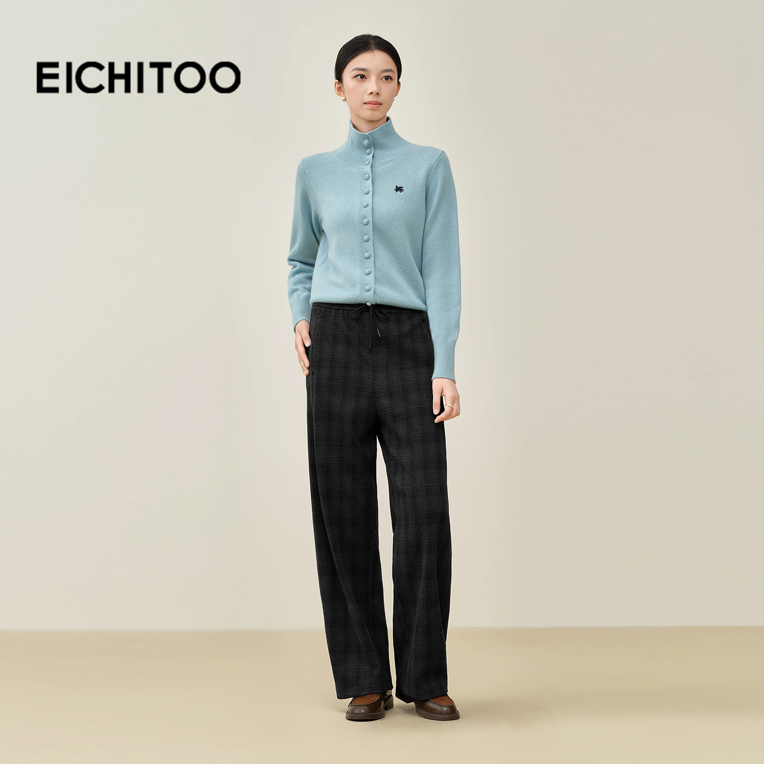 针织复合格纹面料,细腻柔软有型