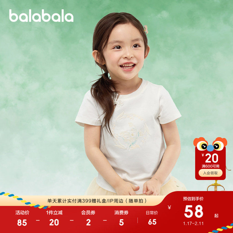 巴拉巴拉儿童短袖女童t恤2025新款夏装中大童新中式绣花上衣时尚