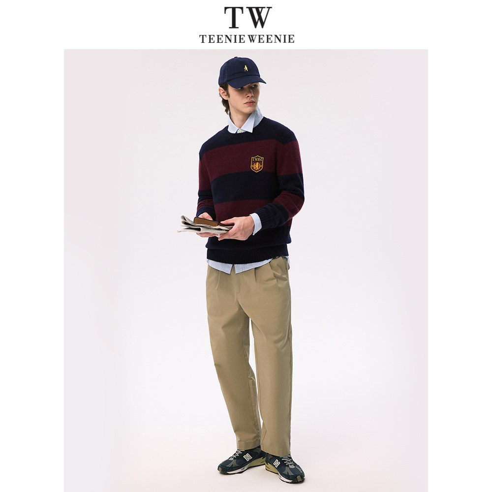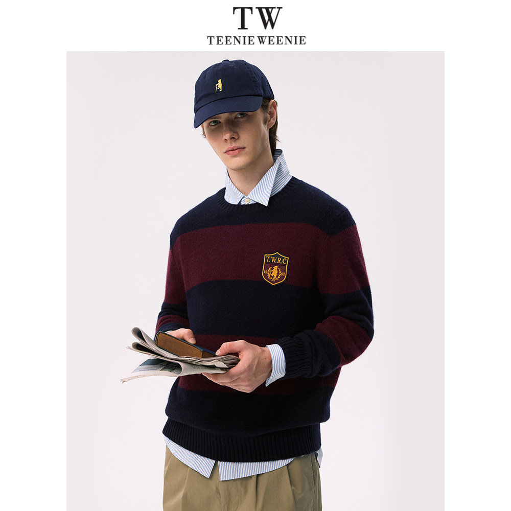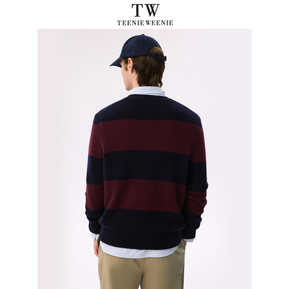TeenieWeenie小熊男装简约时尚针织衫春季学院风撞色条纹套头毛衣