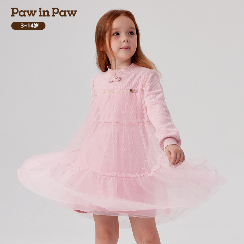 PawinPaw卡通小熊童装秋冬女童毛织网纱气质儿童连衣裙