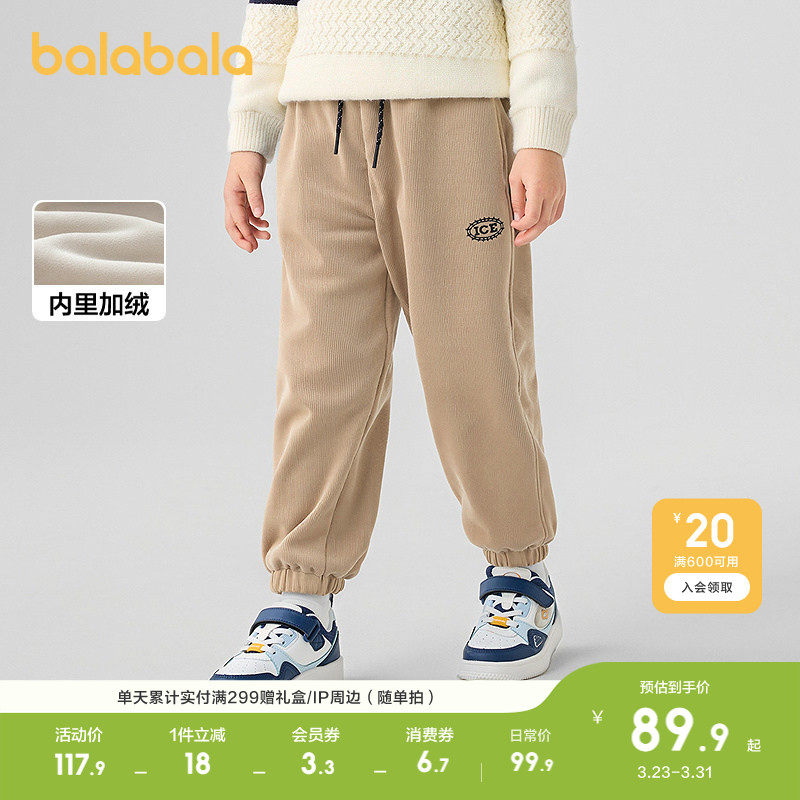 巴拉巴拉童装儿童裤子男童秋冬装加绒长裤潮洋气保暖休闲大童时尚