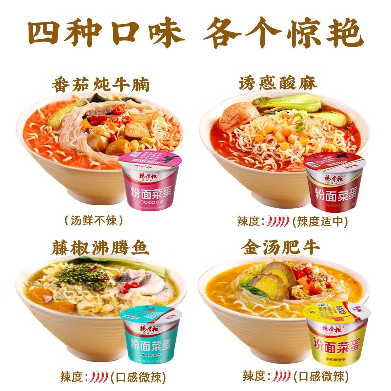 杨掌柜粉菜蛋面金汤肥牛方便面粉面菜蛋泡面重庆火锅桶装速食整箱