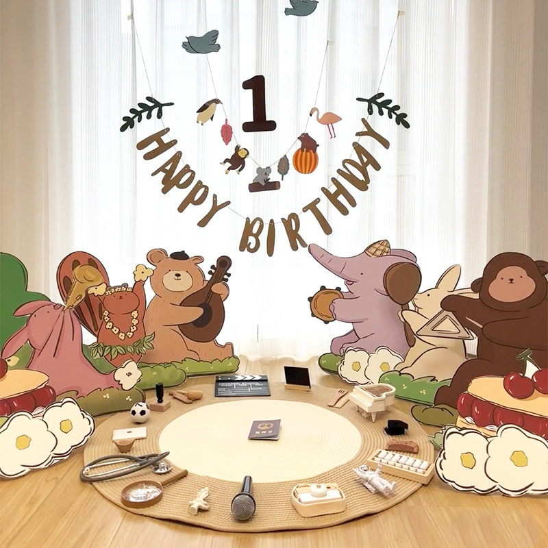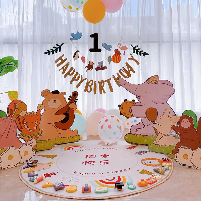 宝宝可摇晃生日派对装扮布置套餐拍照照片墙纸欢迎牌周岁生日装饰