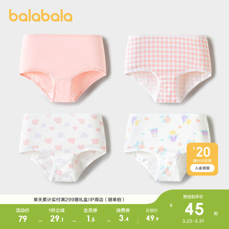 巴拉巴拉女童内裤三角儿童短裤不夹PP小童亲肤A类高弹柔软四条装