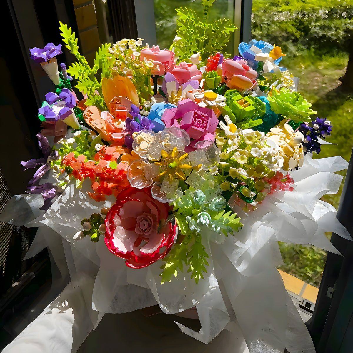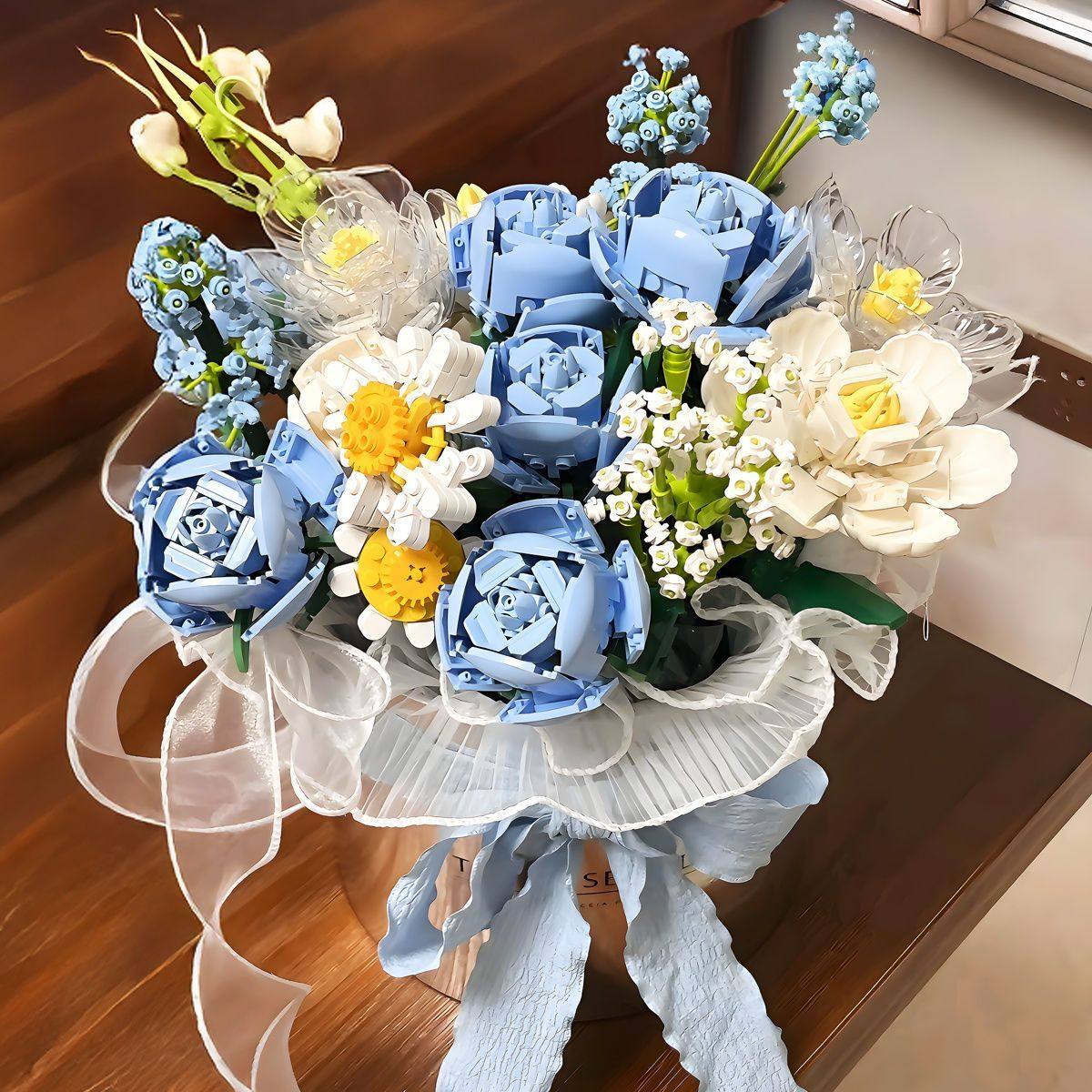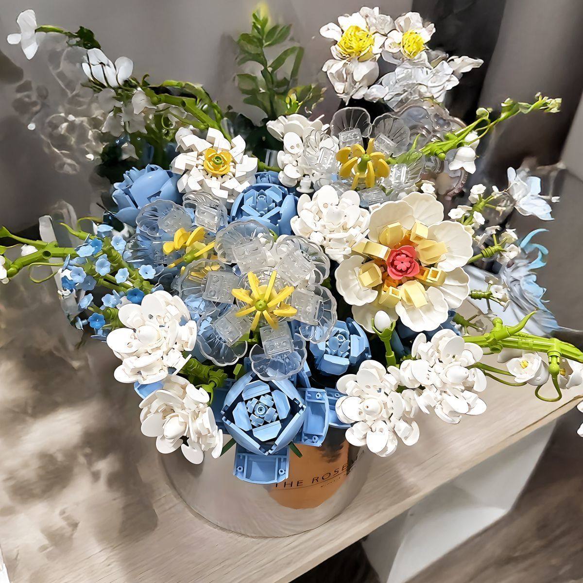 樱花积木花束花朵茉莉花玫瑰花女孩玩具女生拼装生日礼物摆件女友
