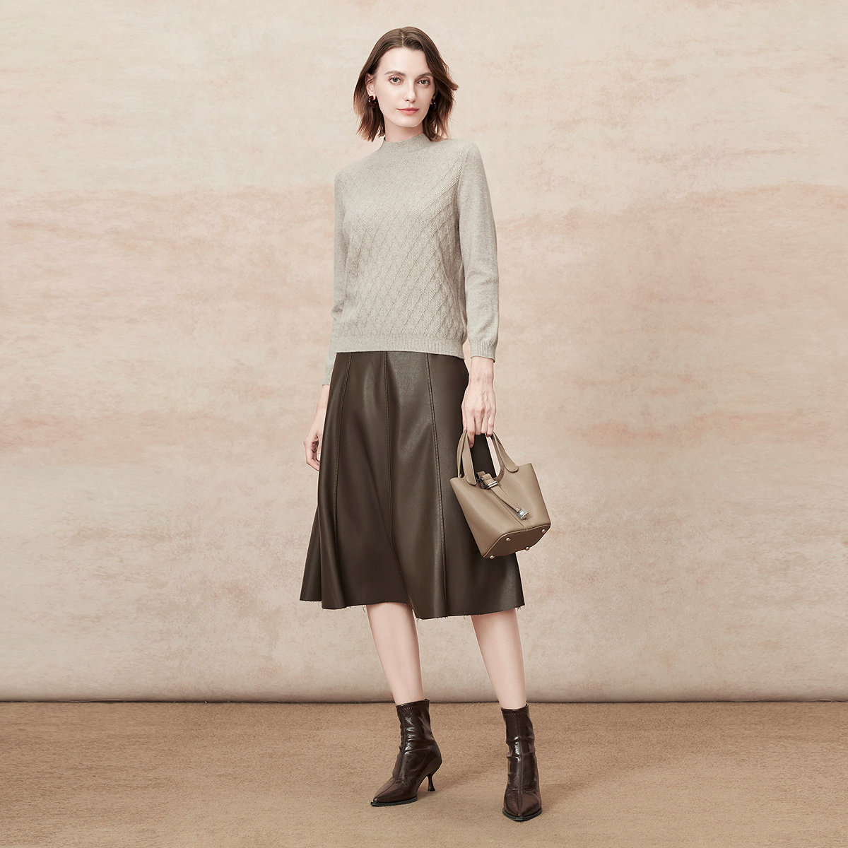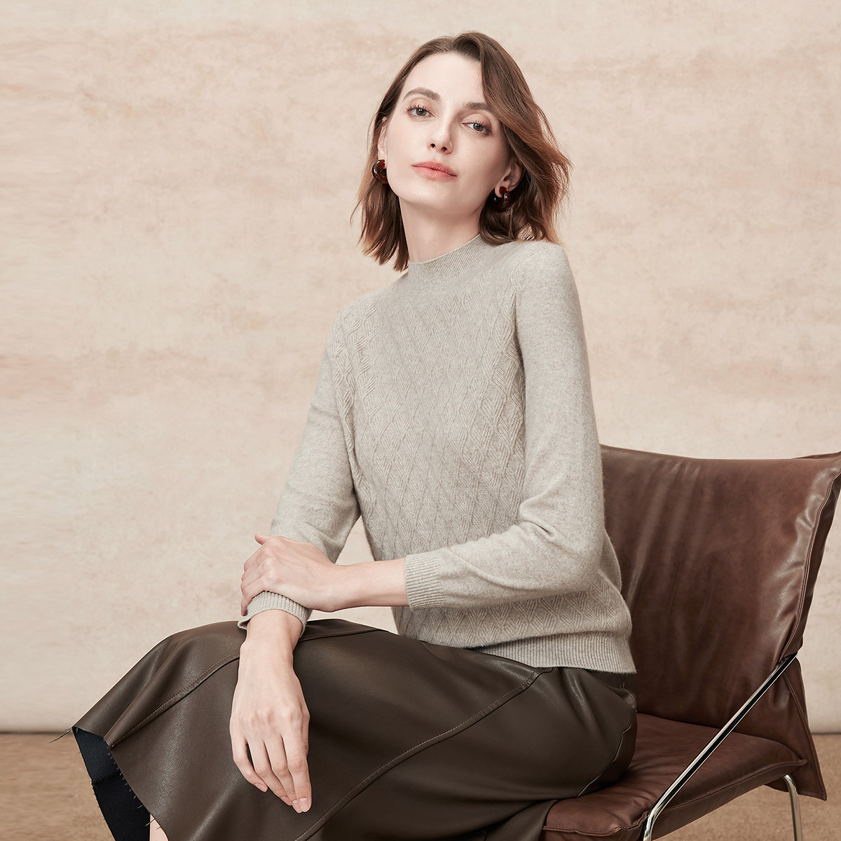 【山羊绒】FINITY菲妮迪羊绒衫2025冬季新款简约圆领米灰色上衣女