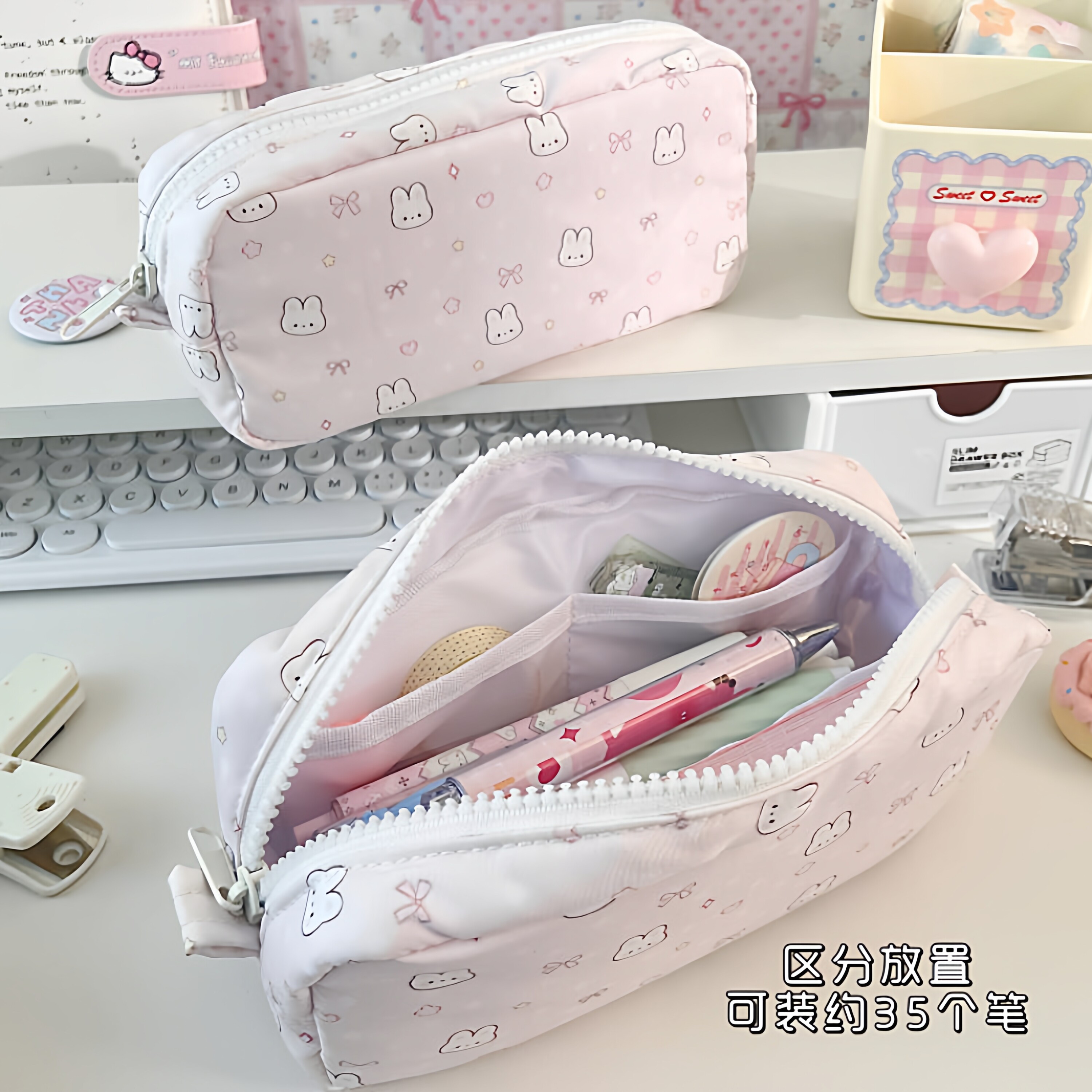 蝴蝶结兔兔大容量女孩笔袋2026超火新款高颜值加厚铅笔袋女生初高中生文具盒小学生儿童多功能ins风创意笔盒
