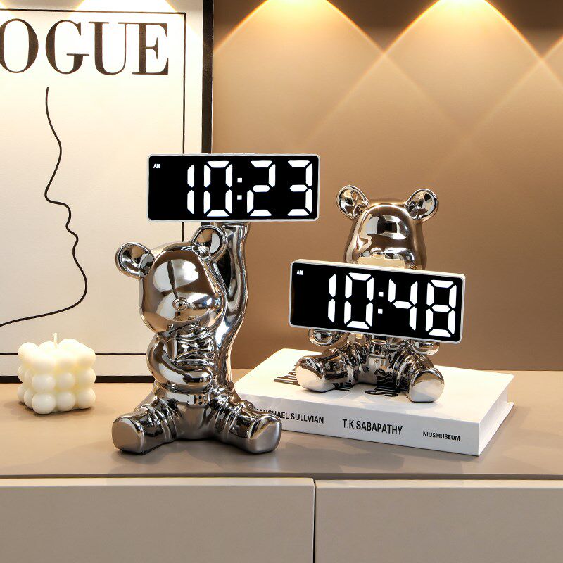 暴力熊时钟摆件电子钟表摆台式智能数字小闹钟玄关客厅桌面装饰品