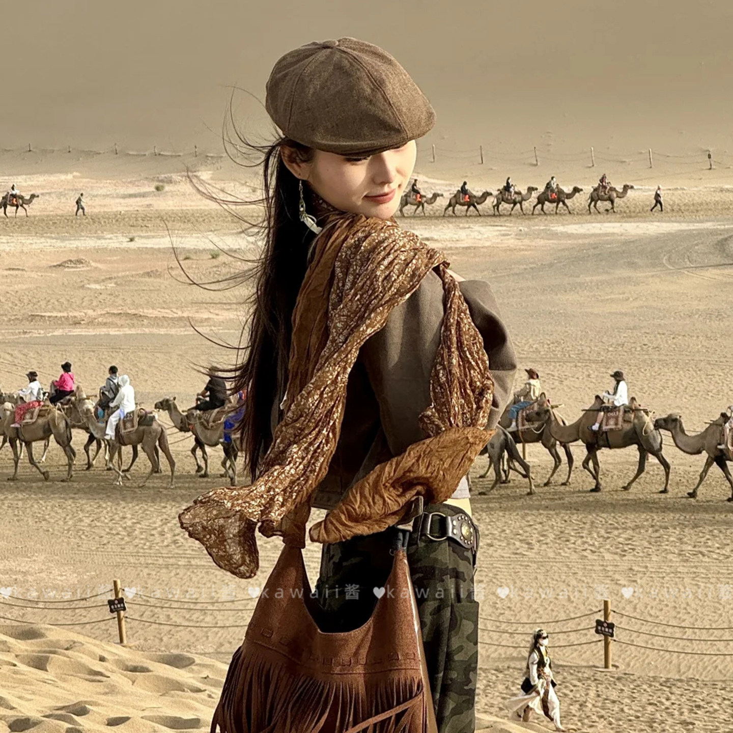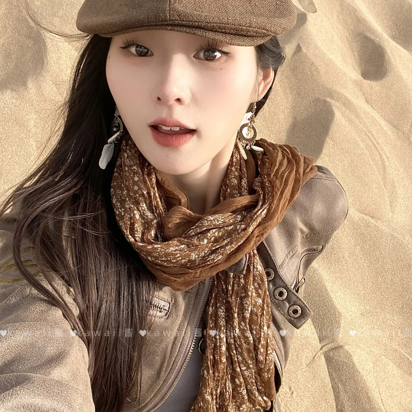 复古文艺民族风褶皱棉麻丝巾女夏季薄款防晒披肩云南旅游拍照围巾