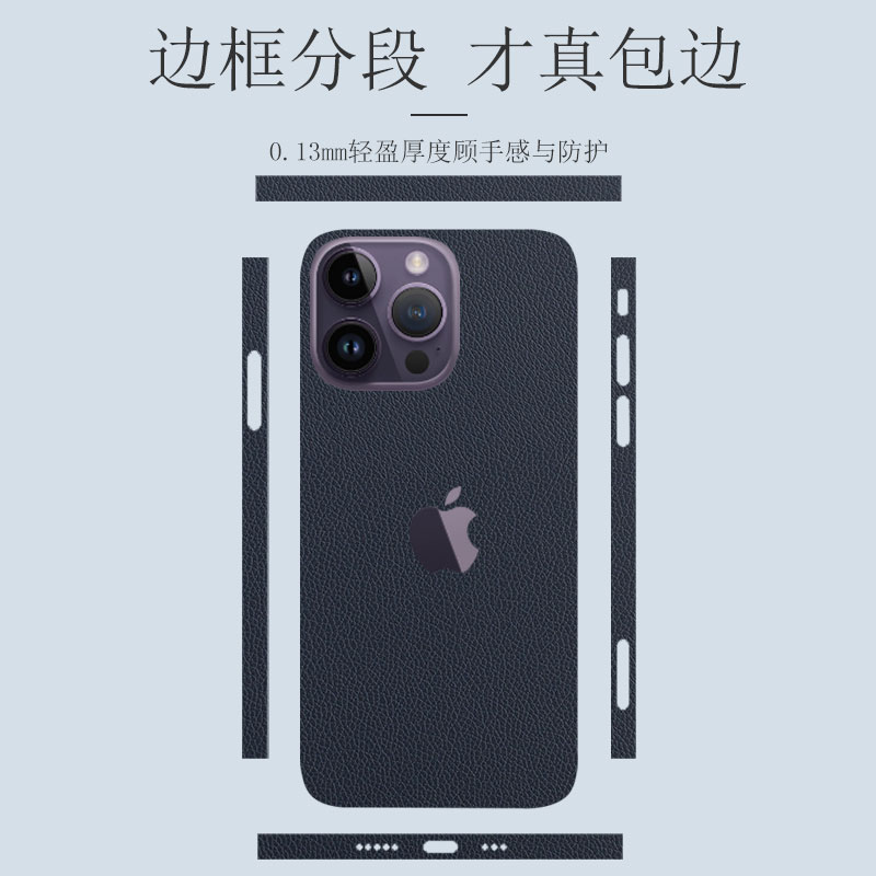 适用苹果17promax背膜16真皮13全包边框14promax手机贴膜12小牛皮纹防尘彩膜13mini侧边贴纸iphone15后改色膜