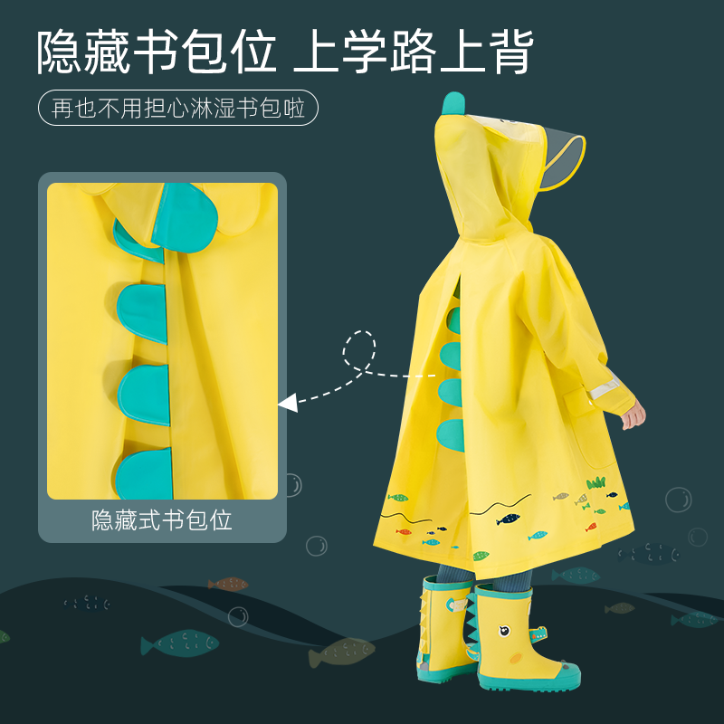 儿童雨衣女童男童女孩防雨服幼儿园专用小童宝宝雨披小孩新款恐龙
