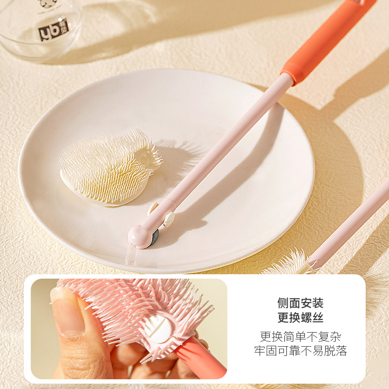 食品级硅胶|可折叠刷头|加长手柄|不挑杯型