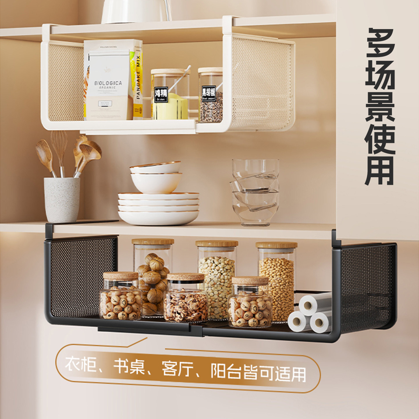橱柜伸缩挂篮悬挂吊柜下挂架分层多功能式储物架厨房置物架挂式