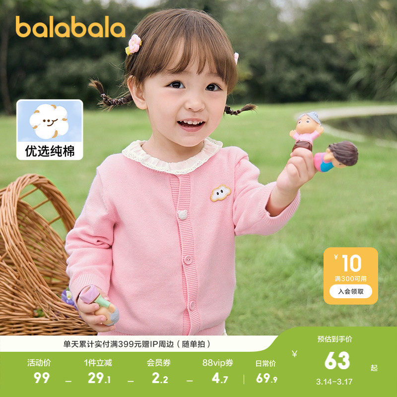 巴拉巴拉童装婴儿针织衫儿童薄开衫宝宝毛衣秋装春装纯棉软糯亲肤
