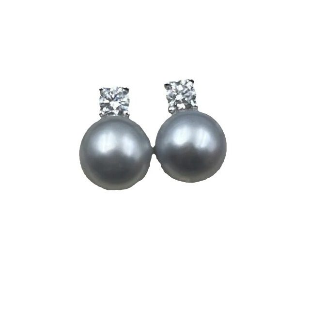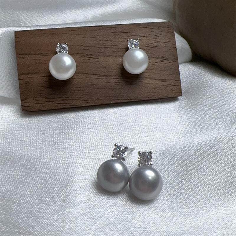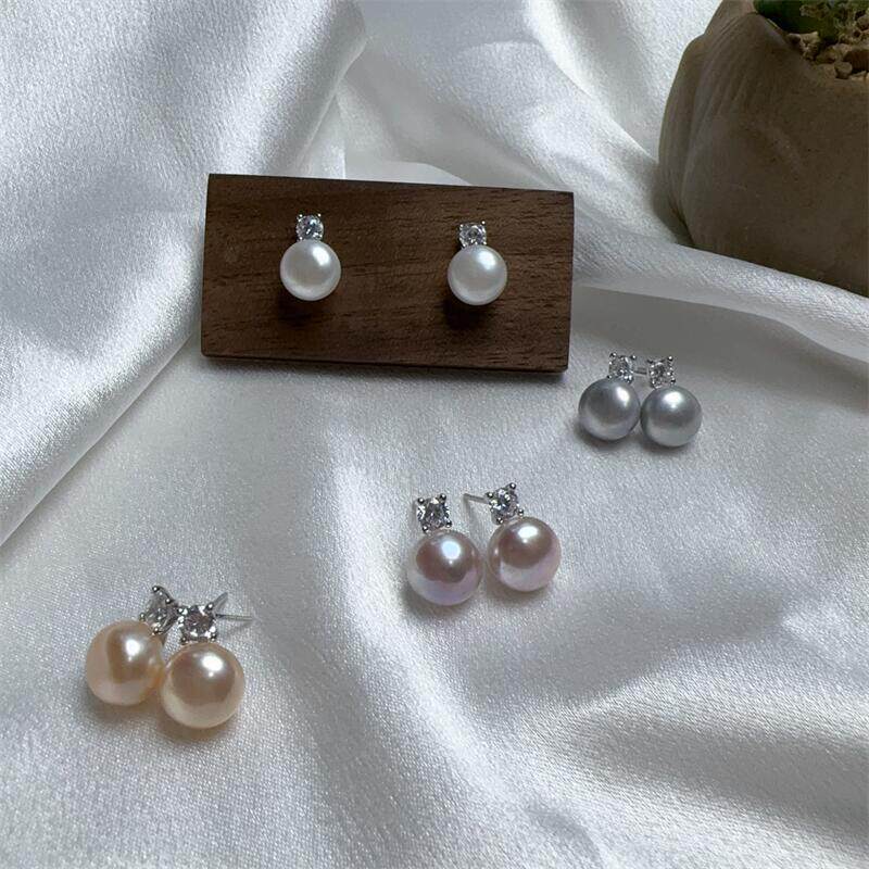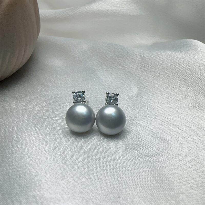 诸暨珍珠经典戴妃款淡水珍珠强光耳钉简约镶钻款通体s925银耳饰