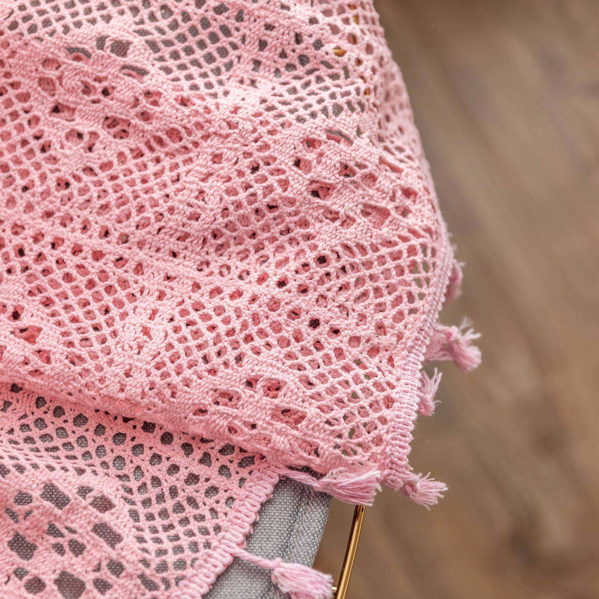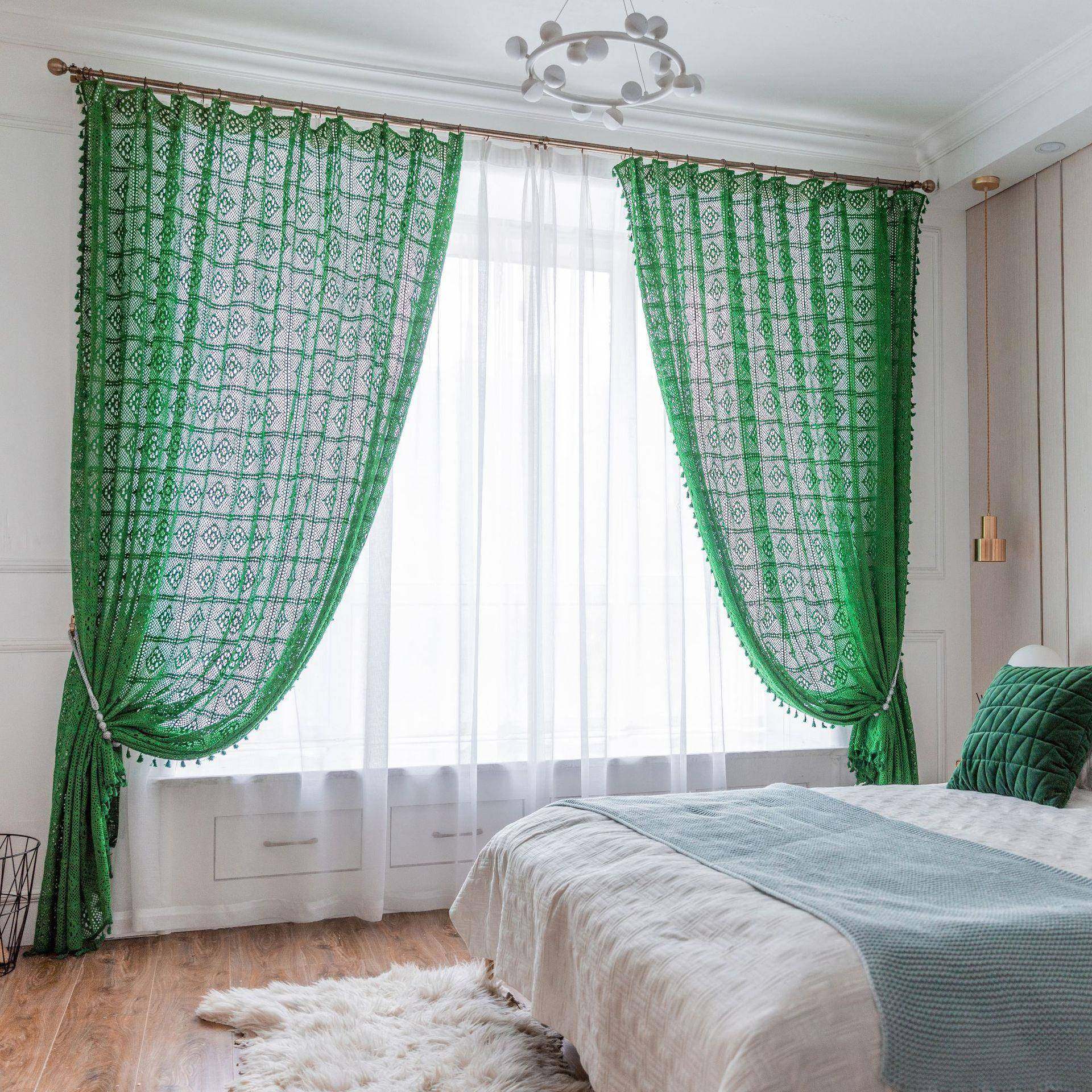 粉色绿色透光复古镂空窗帘成品钩针北美乡村布艺落地窗纱飘窗