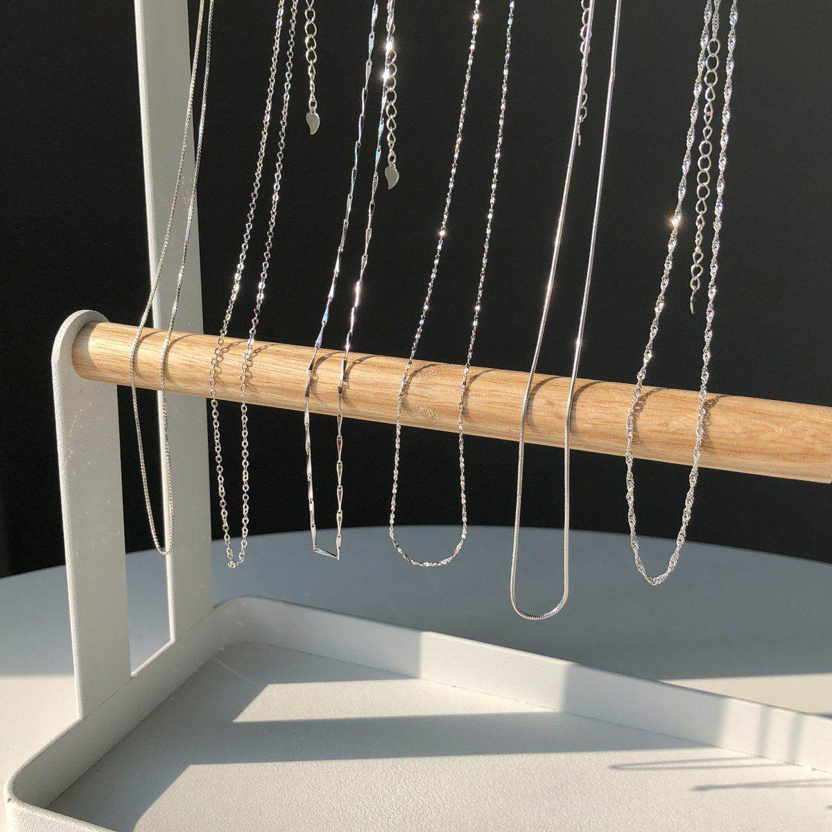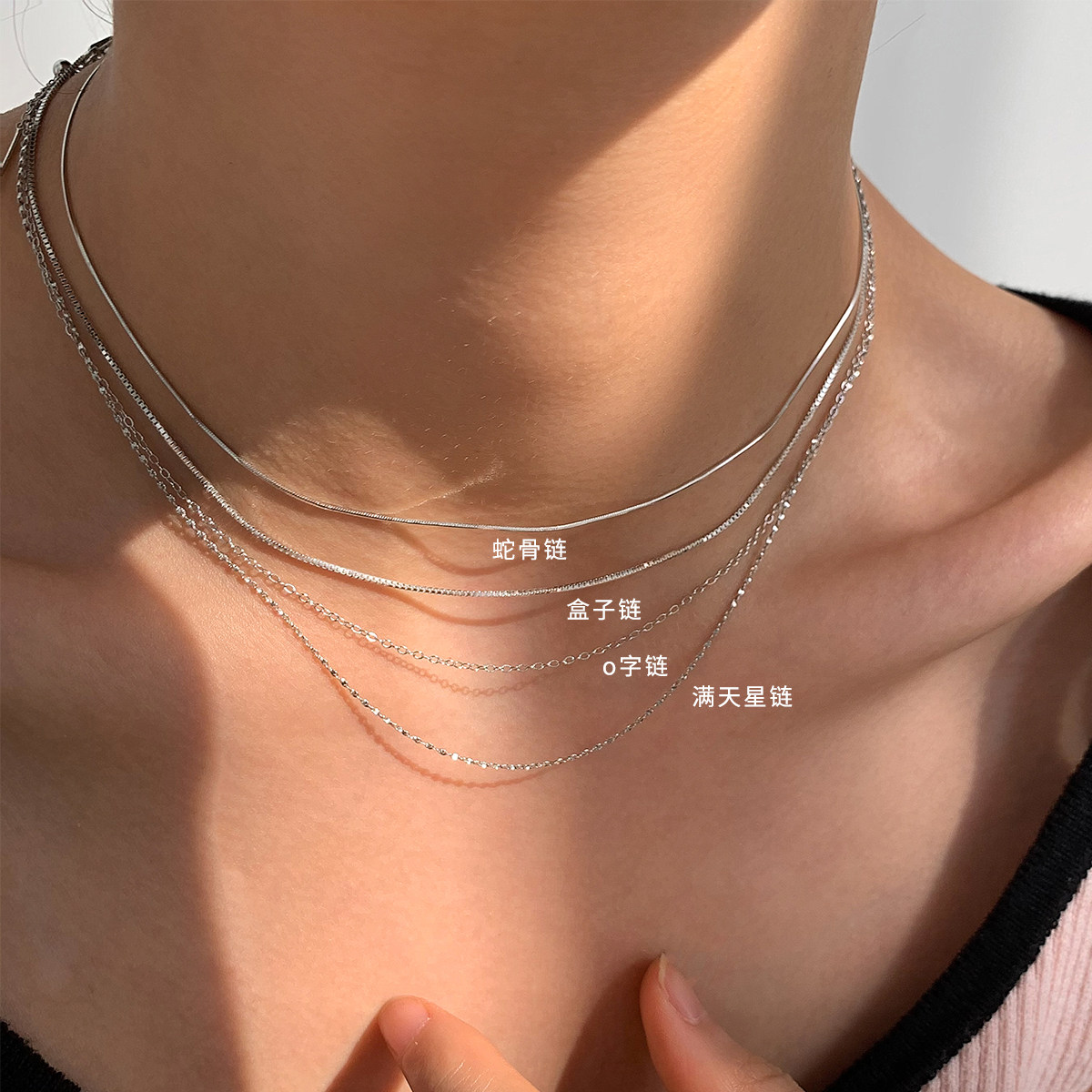 为晚百搭纯银项链女款裸素链金简约气质精致蛇骨链轻奢锁骨链颈链