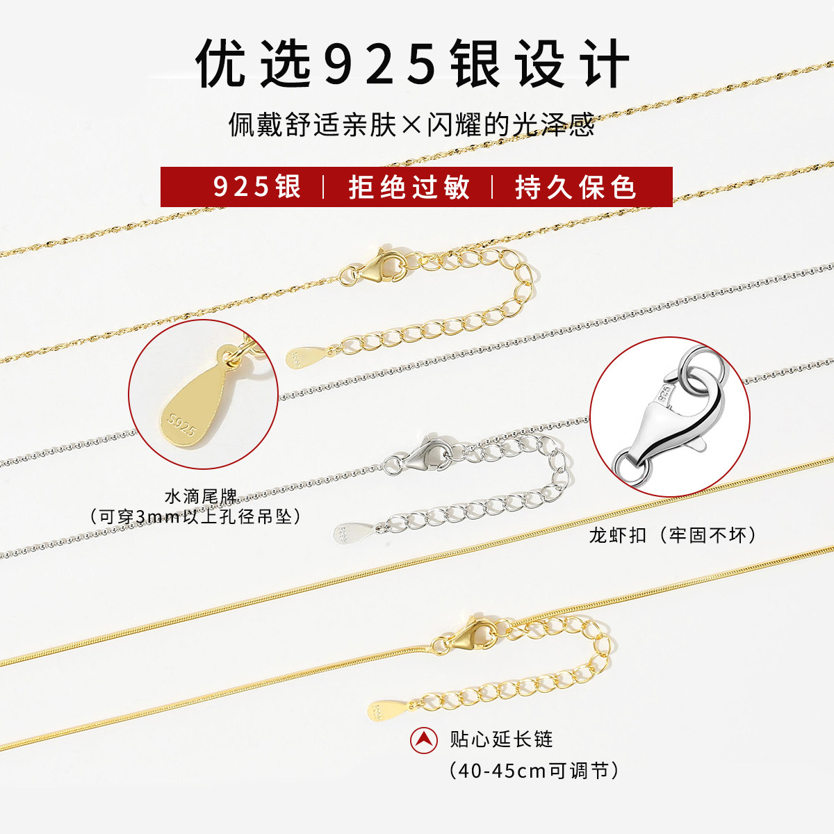 999纯银项链女925银链子可穿吊坠饰品足银素链正品银饰官方旗舰店