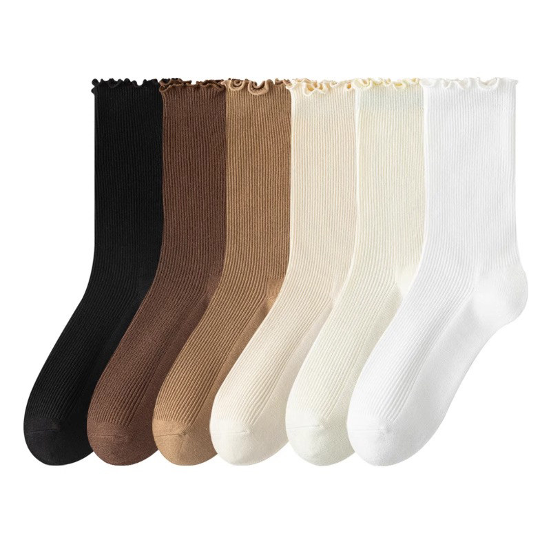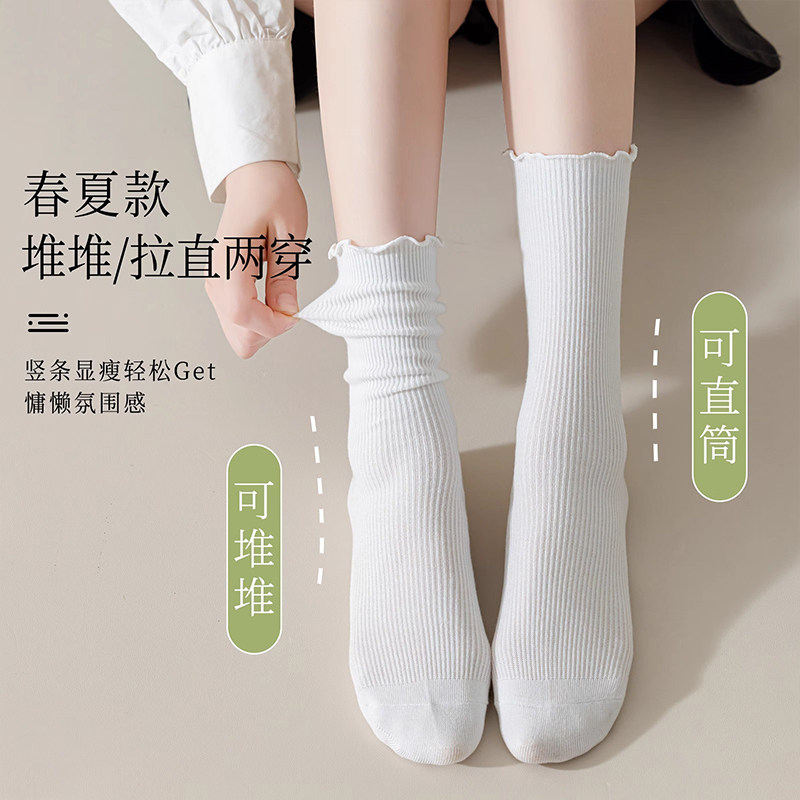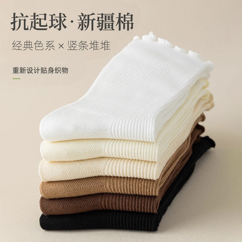 白色堆堆袜子女款秋冬季中筒袜新疆棉防臭吸汗木耳边春秋女士长袜