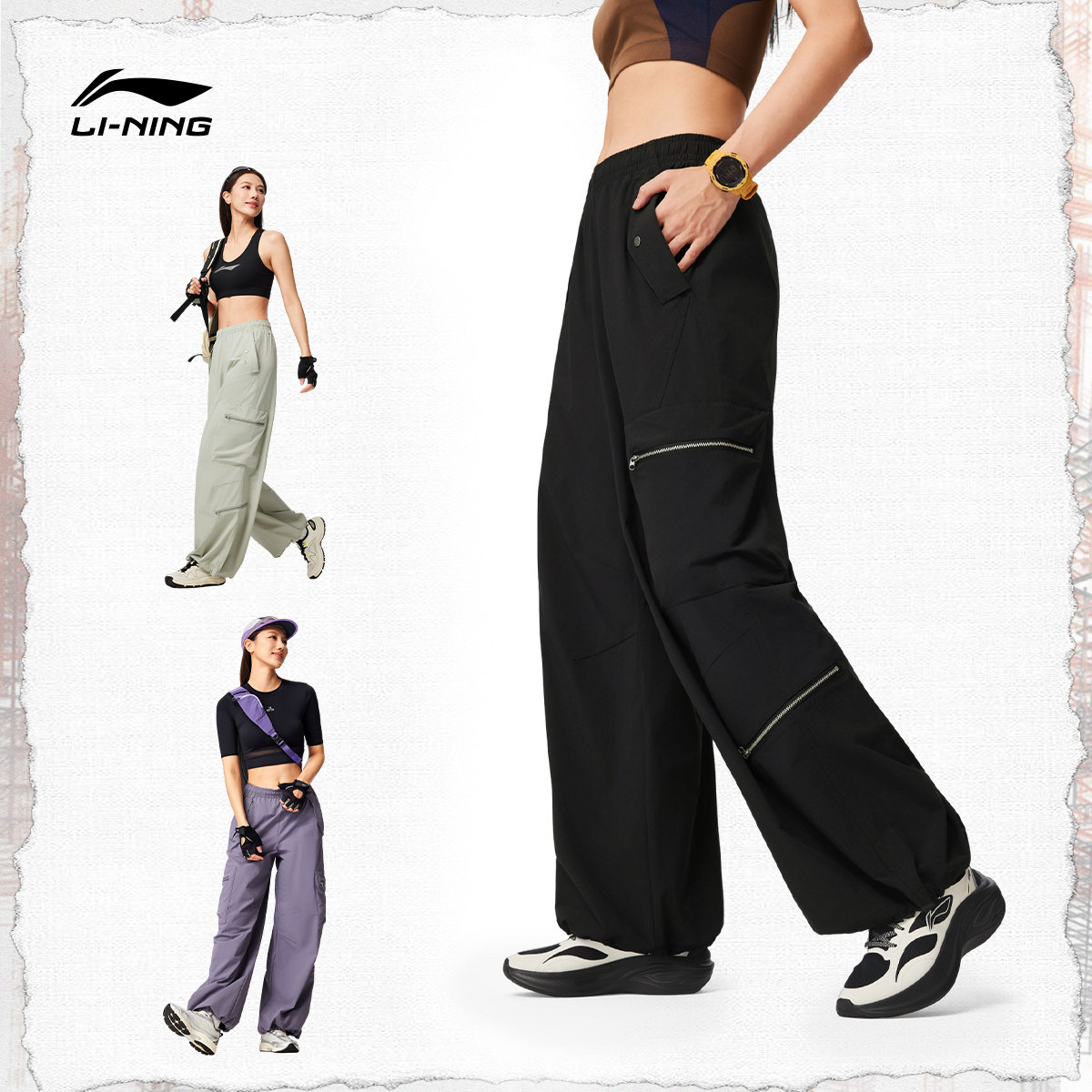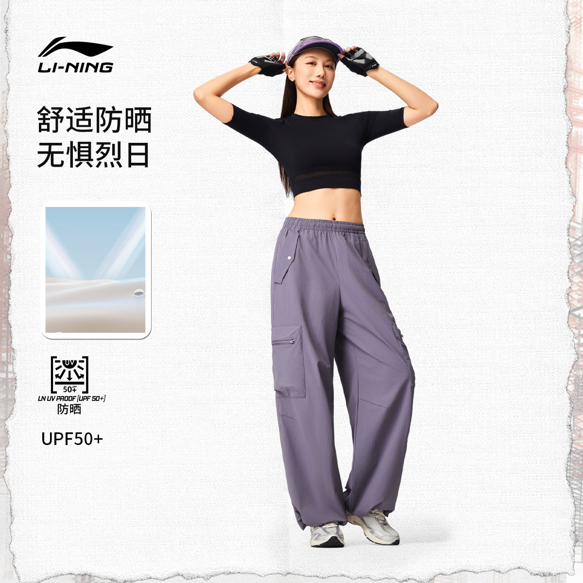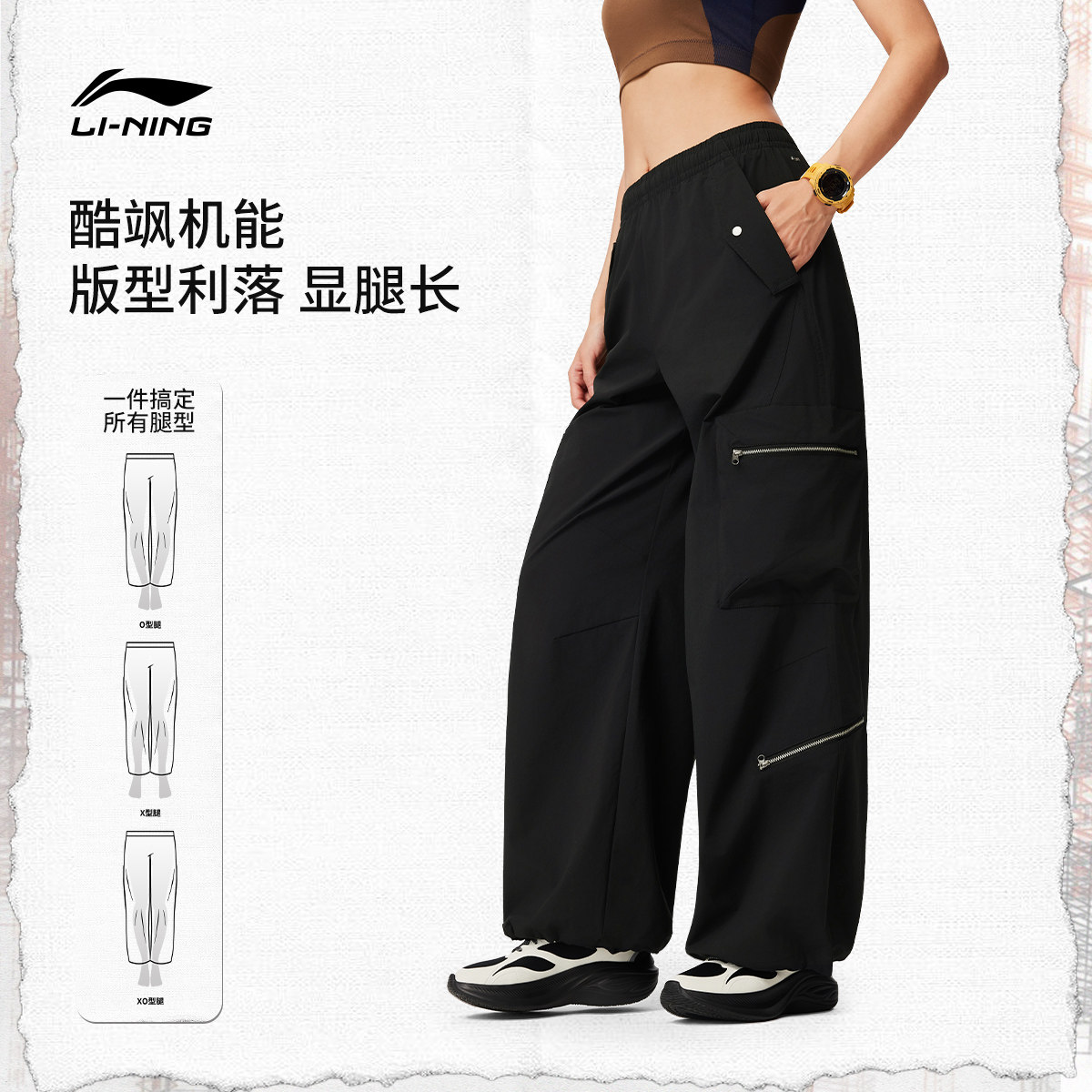 李宁C位裤丨工装裤新款女休闲防晒运动长裤子春季直筒显瘦阔腿裤