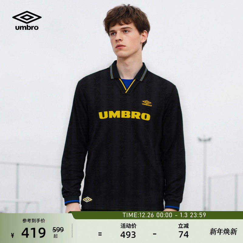 【欧文同款】umbro茵宝运动长袖POLO衫男女同款复刻球衣条纹T恤衫