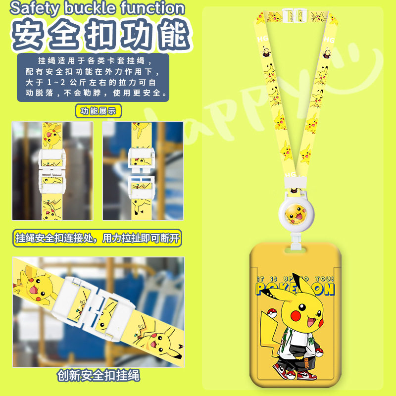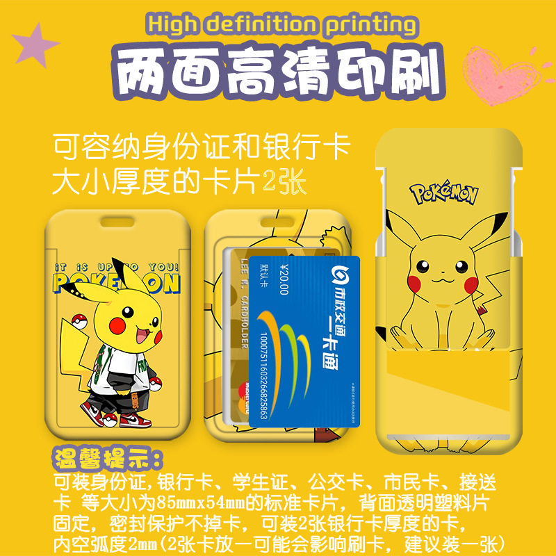 卡通可爱皮卡丘卡套幼儿园学生接送卡套公交地铁门禁卡套长挂脖绳