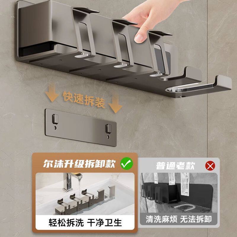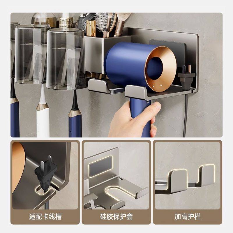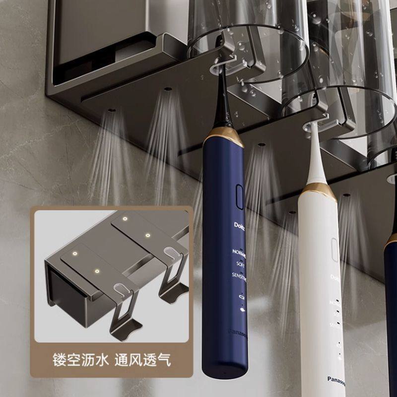 牙刷置物架免打孔枪灰卫生间漱口杯刷牙杯收纳壁挂式电动牙刷架子
