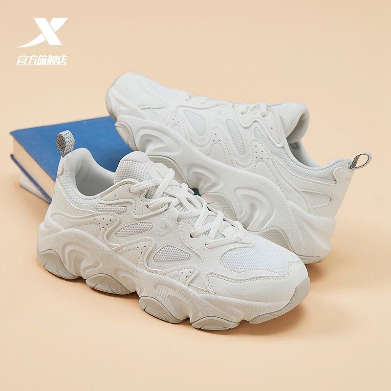 特步断码清仓女鞋正品跑步鞋秋季皮面防水耐磨休闲老爹运动鞋网面