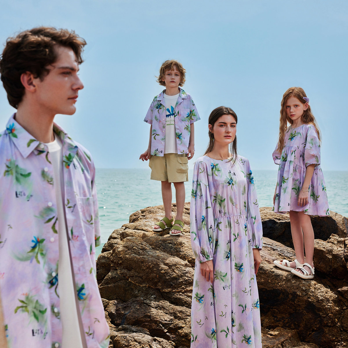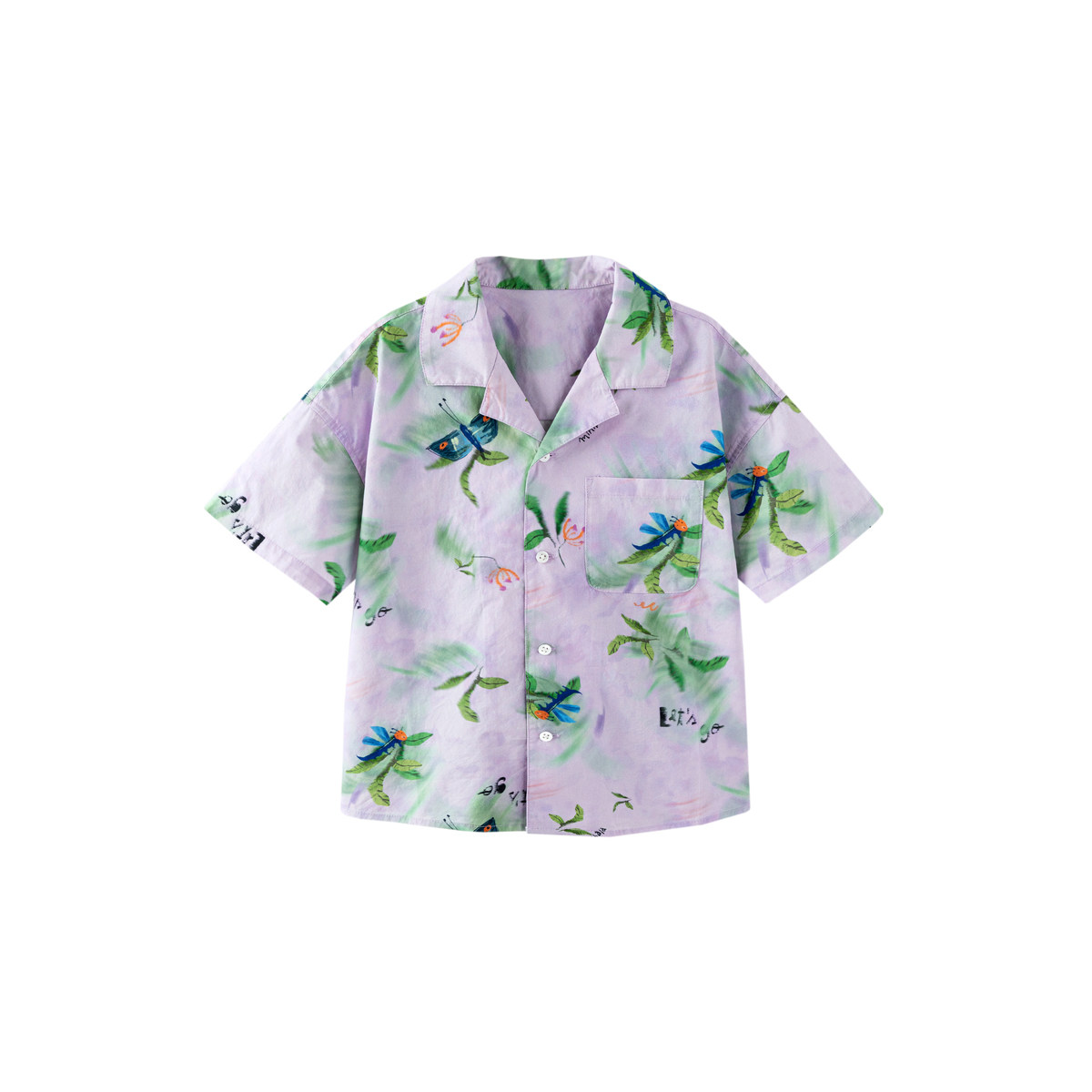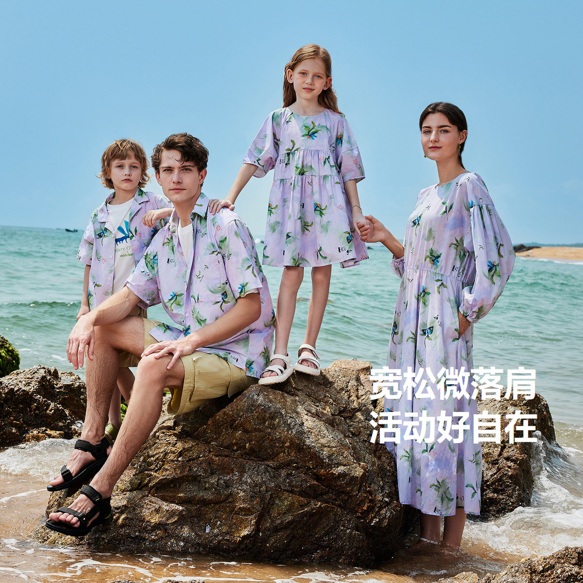 迷你巴拉巴拉男童衬衫夏季亲子装纯棉艺术家联名纯棉儿童短袖