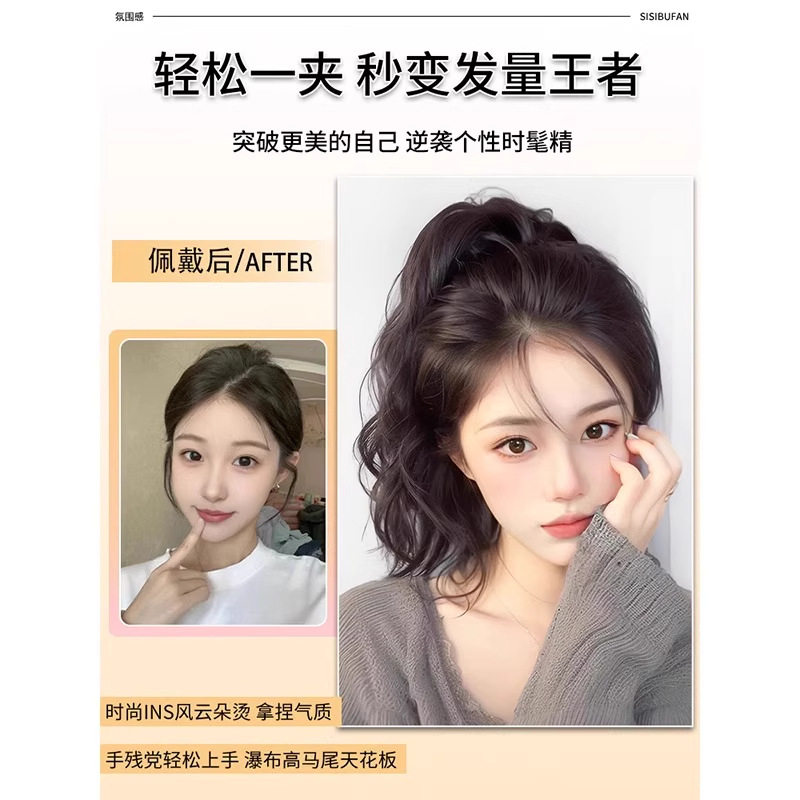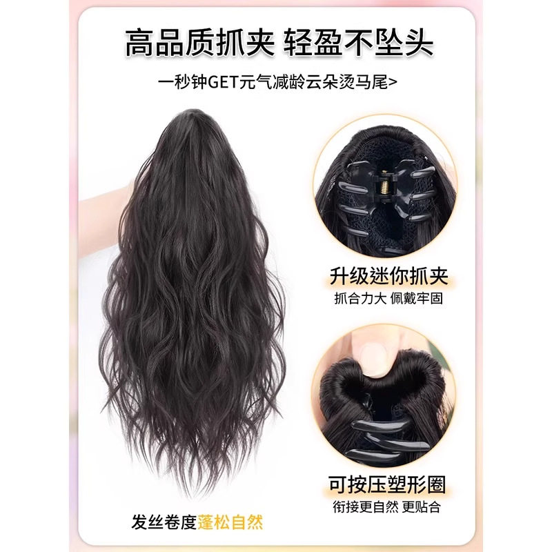 马尾假发女仿全真发抓夹短款轻高马尾卷发自然蓬松长发辫子假马尾