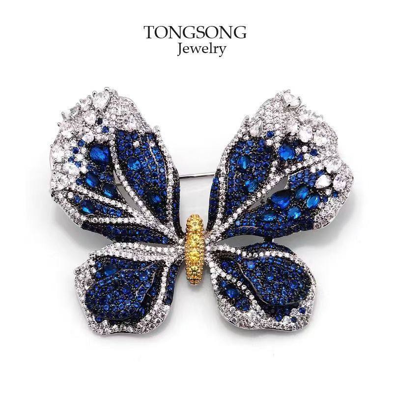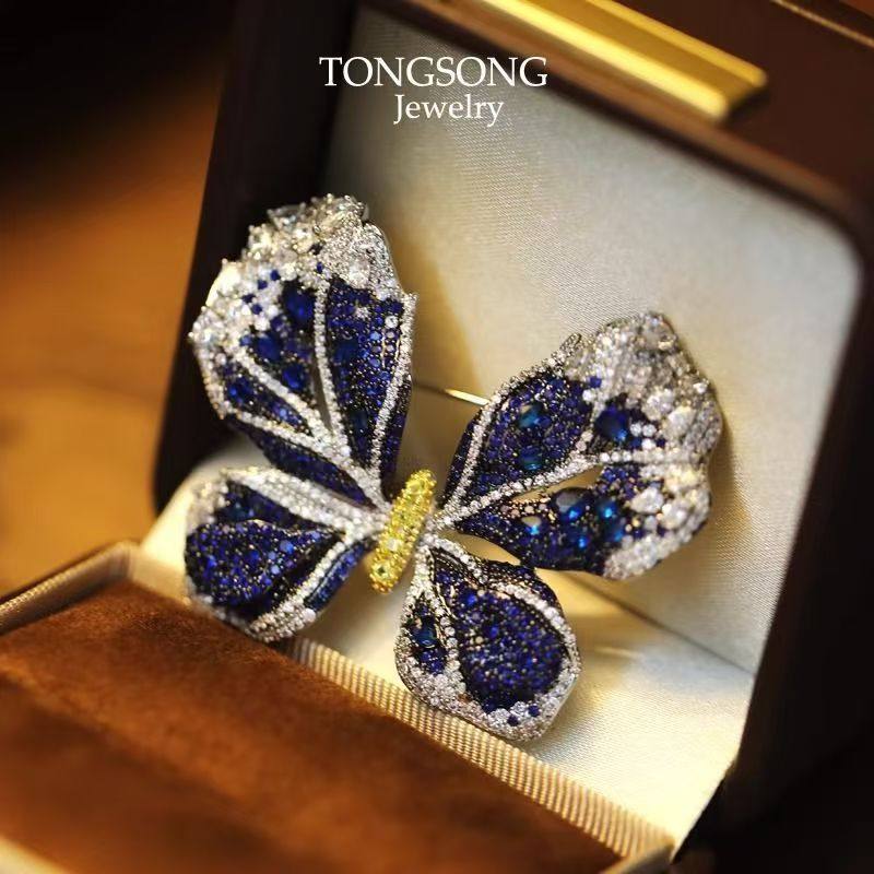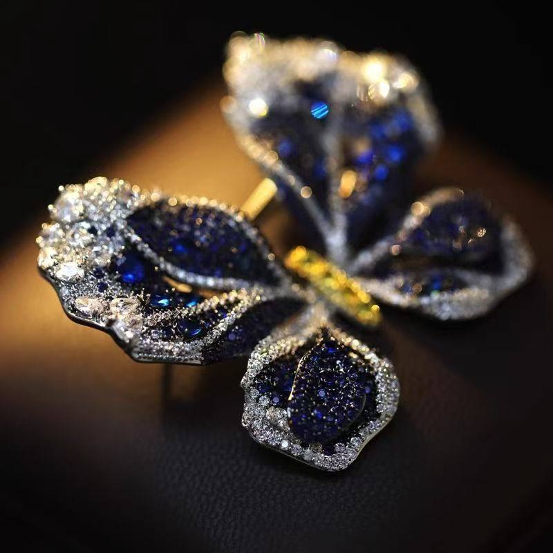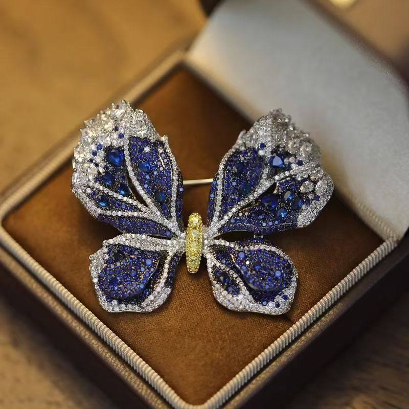 新品爆款奢华微镶闪钻高级蓝蝴蝶胸针重工气质大衣西装配饰女胸花
