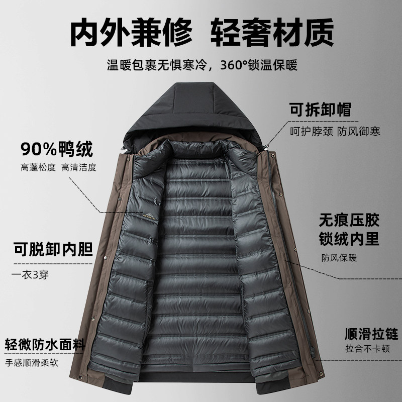 雅鹿羽绒服男中长款一衣三穿保暖厚外套商务休闲中老年爸爸装