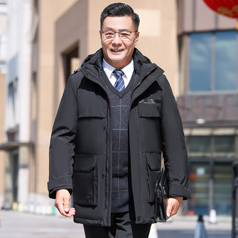 爸爸冬装运动羽绒服防寒保暖派克服加厚中年男士冬季外套爷爷衣服