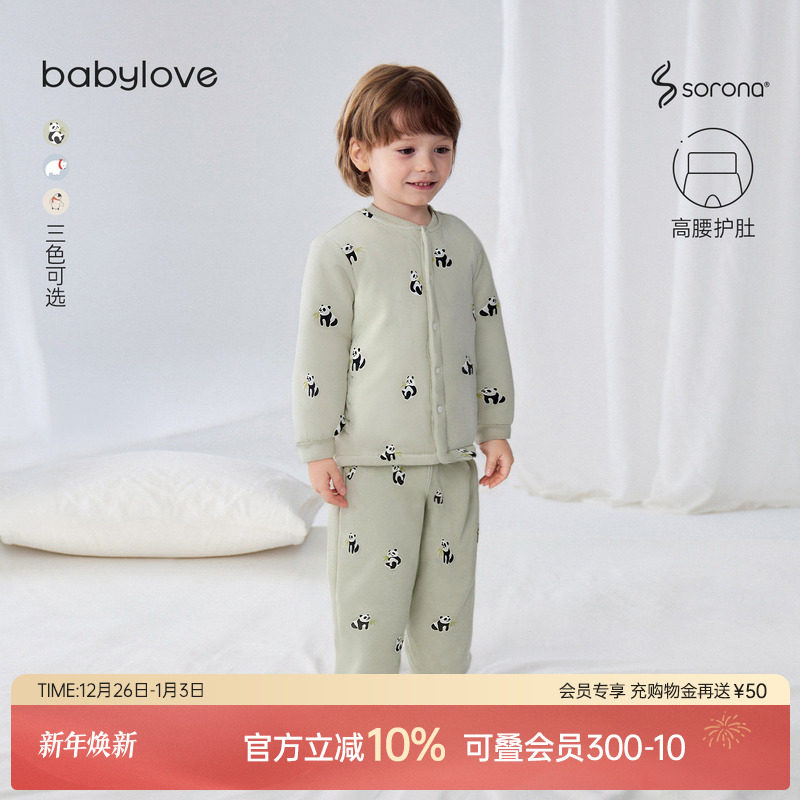 babylove宝宝夹棉保暖套装秋冬季纯棉婴儿上衣裤子夹棉两件套棉服